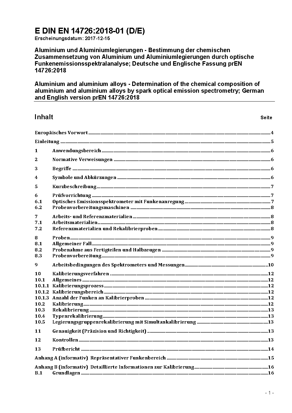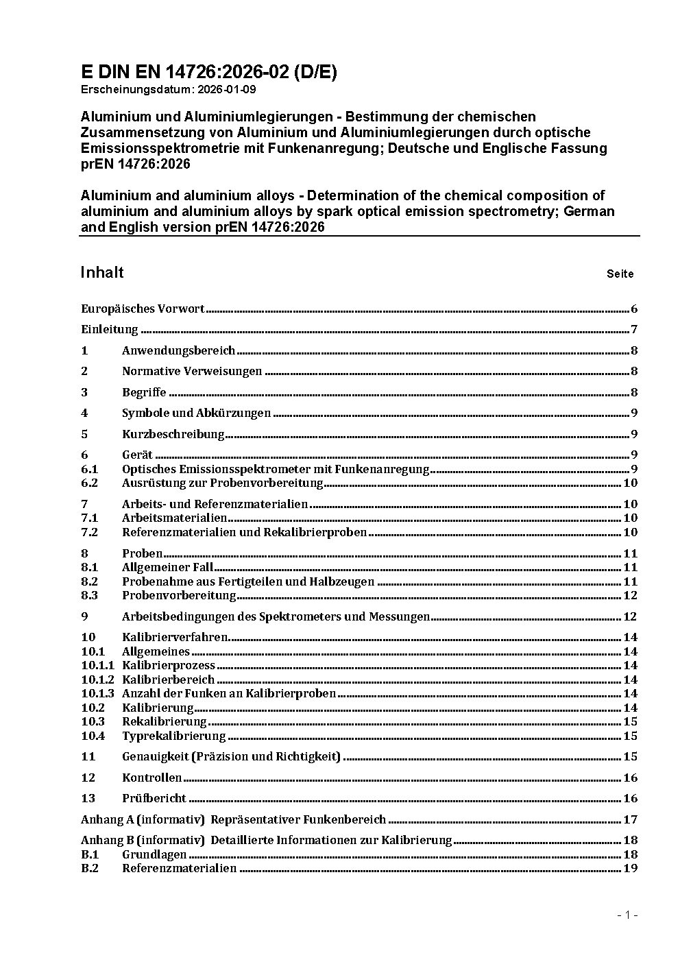 Aluminium und Aluminiumlegierungen - Chemische Analyse - Leitfaden für die optische Funkenemissionsspektralanalyse; Deutsche Fassung EN 14726:2005