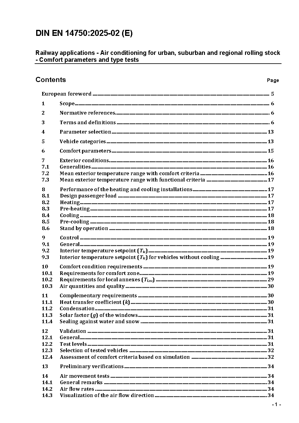 Railway applications - Air conditioning for urban, suburban and regional rolling stock - Comfort parameters and type tests; German and English version prEN 14750:2022
