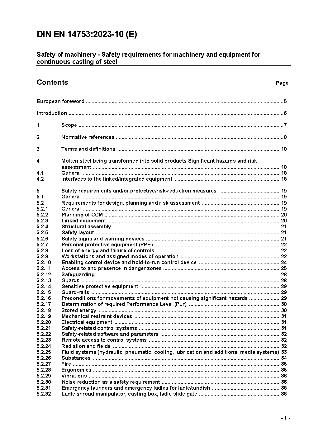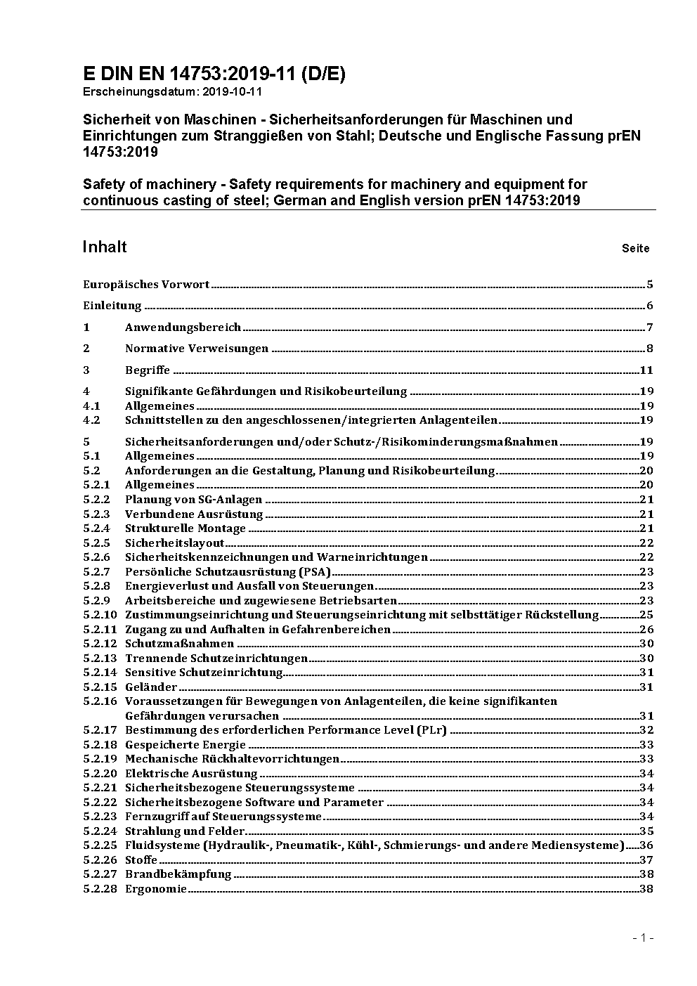 Safety of machinery - Safety requirements for machinery and equipment for the continuous casting of steel; German version prEN 14753:2003