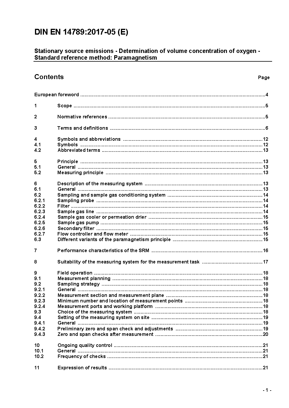 Emissionen aus stationären Quellen - Bestimmung der Volumenkonzentration von Sauerstoff (O<(Index)2>) - Referenzverfahren - Paramagnetismus; Deutsche Fassung EN 14789:2005