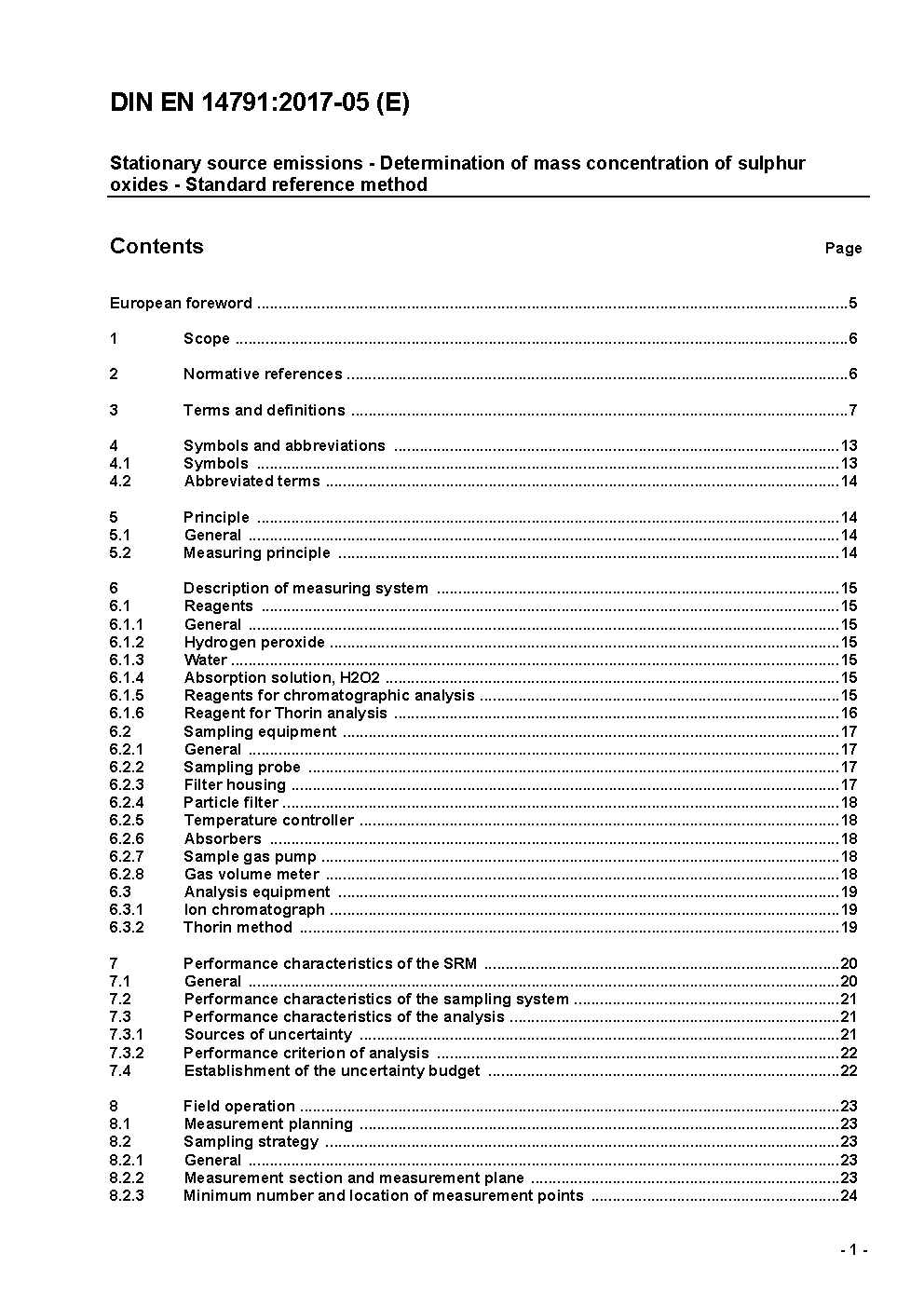 Stationary source emissions - Determination of mass concentration of sulphur dioxide - Reference method; German version EN 14791:2005