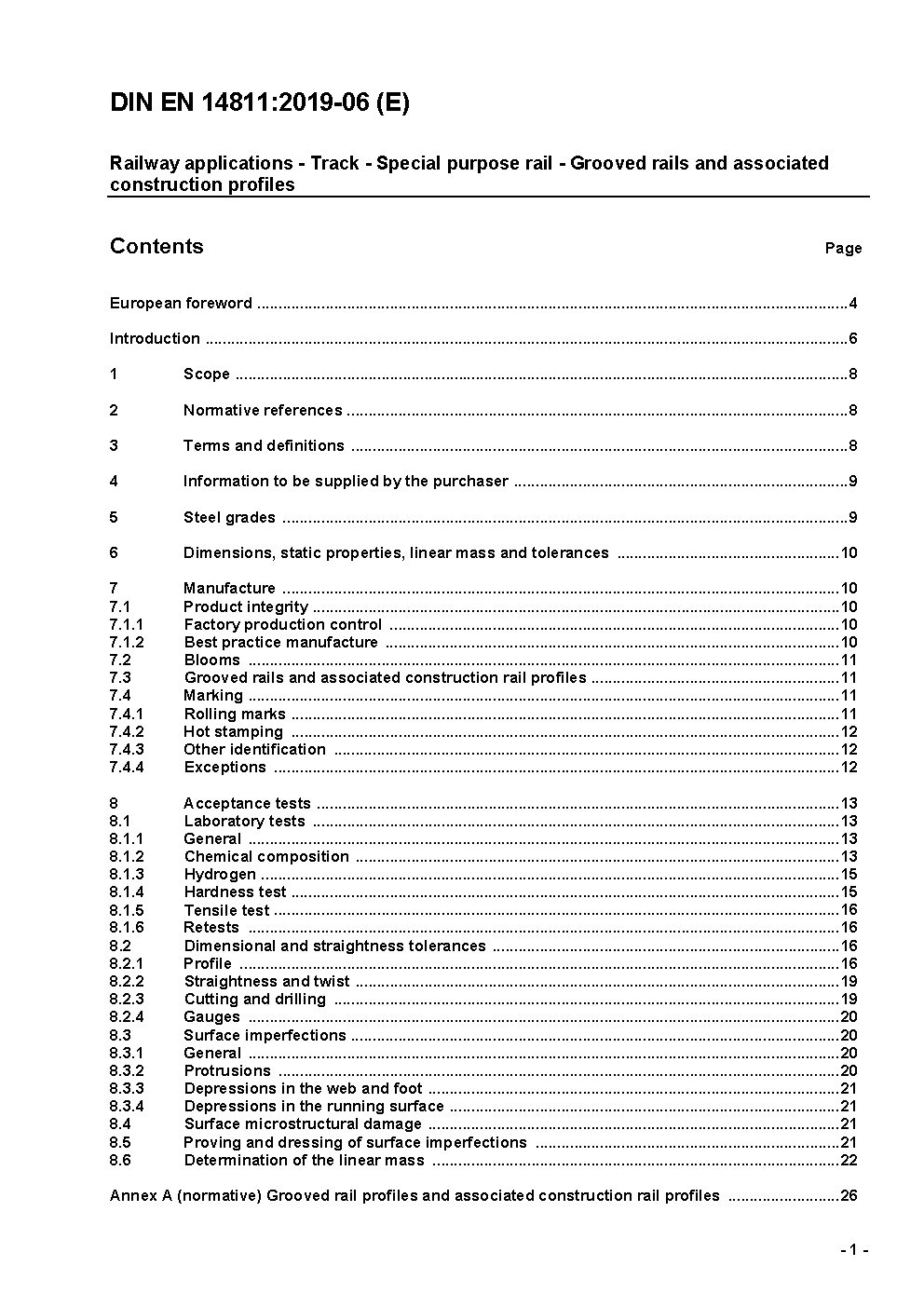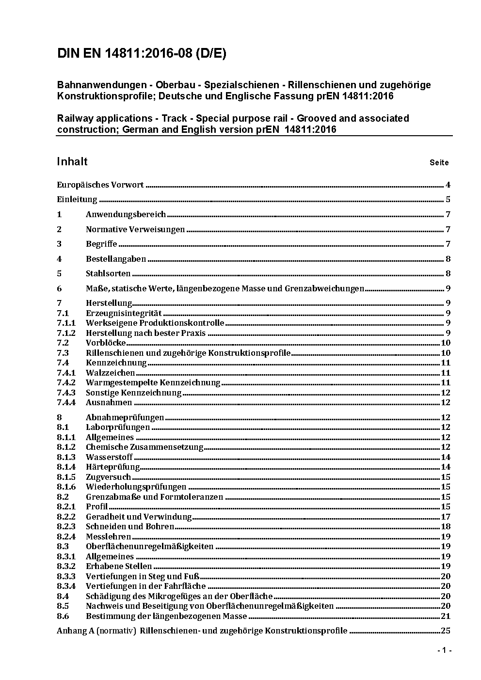 Railway applications - Track - Special purpose rail - Grooved and associated construction; German and English version prEN 14811:2016