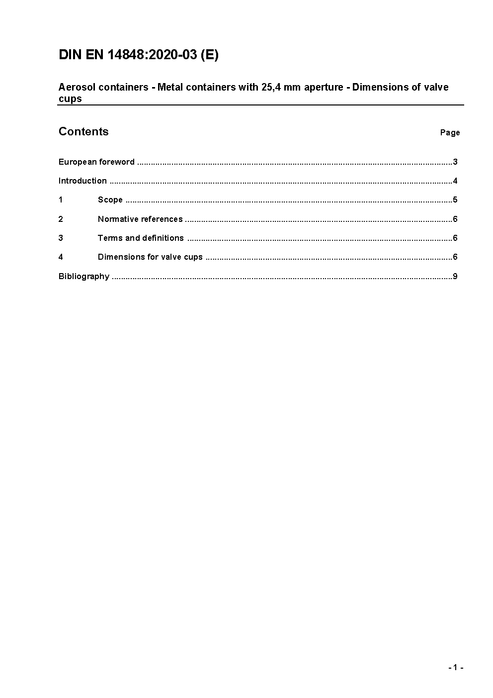 Aerosol containers - Metal containers with 25,4 mm aperture - Dimensions of valve cups; German and English version prEN 14848:2018