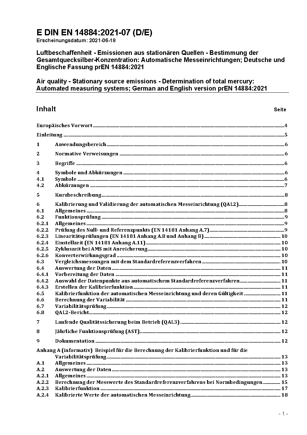 Luftbeschaffenheit - Emissionen aus stationären Quellen - Bestimmung der Gesamtquecksilber-Konzentration: Automatische Messeinrichtungen; Deutsche Fassung EN 14884:2005