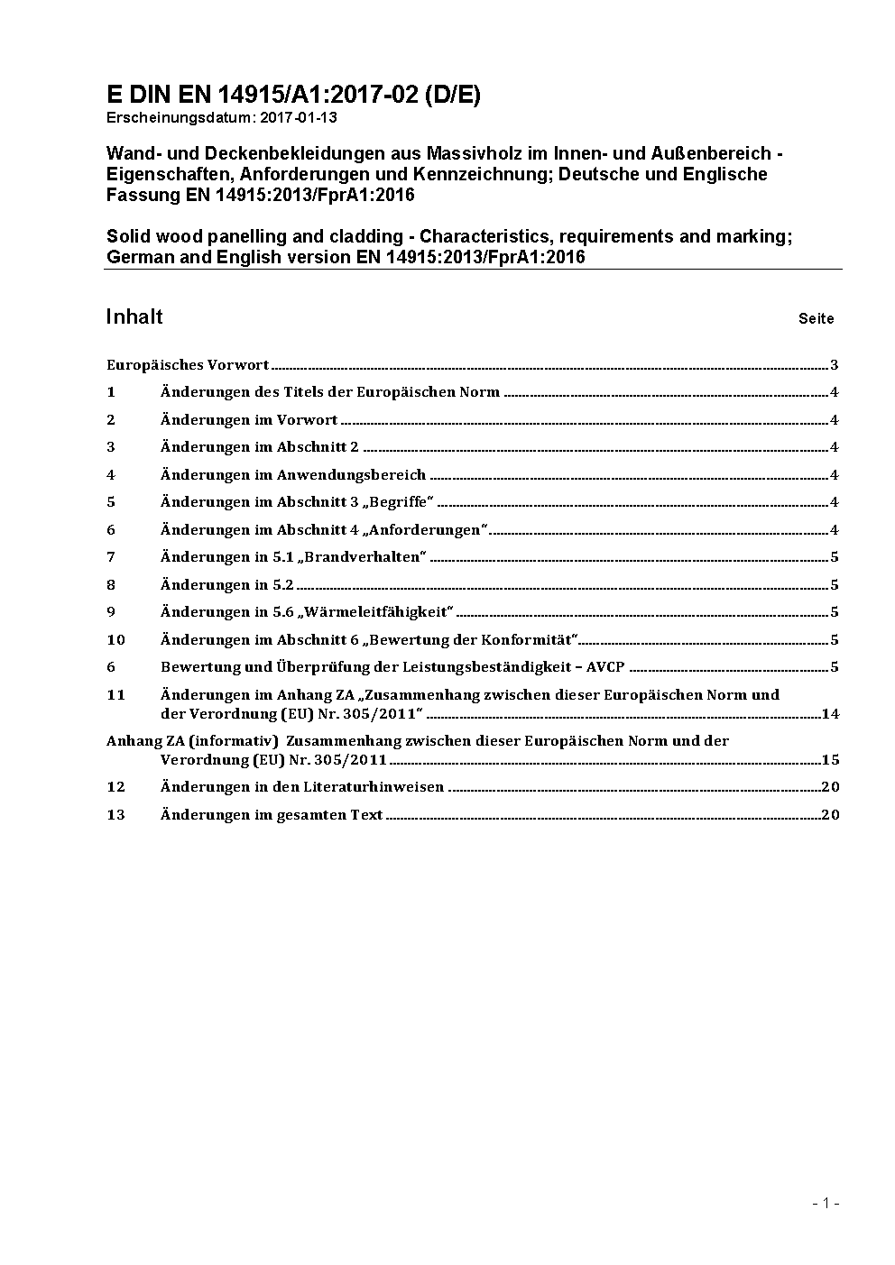 Wand- und Deckenbekleidungen aus Massivholz - Eigenschaften, Bewertung der Konformität und Kennzeichnung; Deutsche Fassung prEN 14915:2004