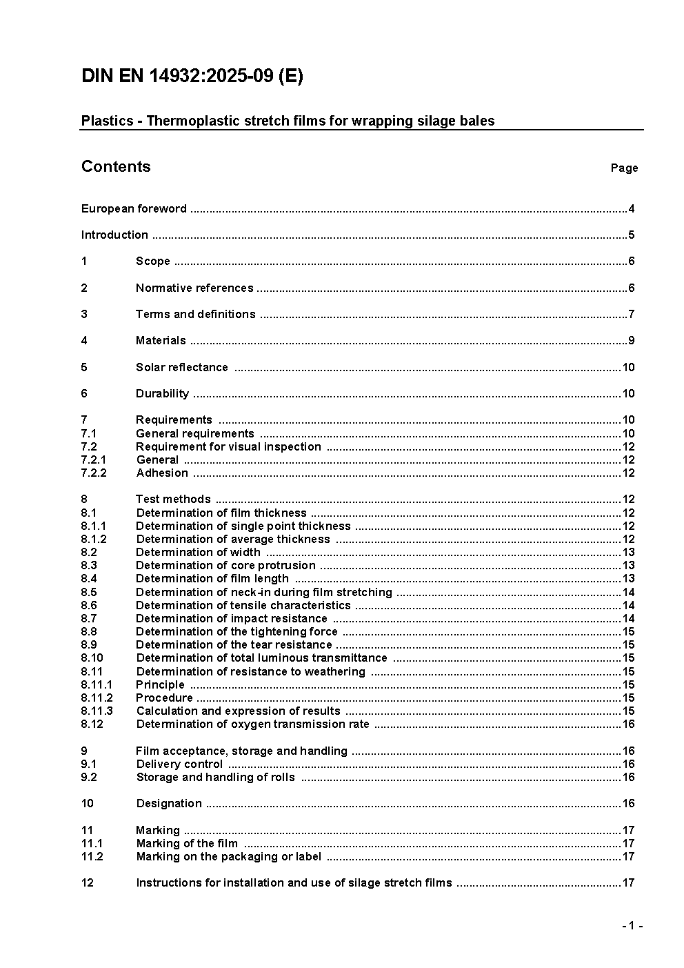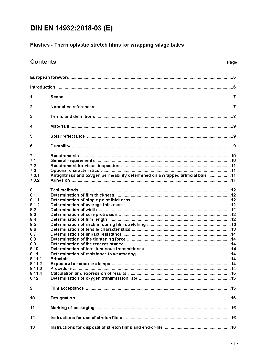 Plastics - Thermoplastic stretch films for wrapping silage bales; German version EN 14932:2018