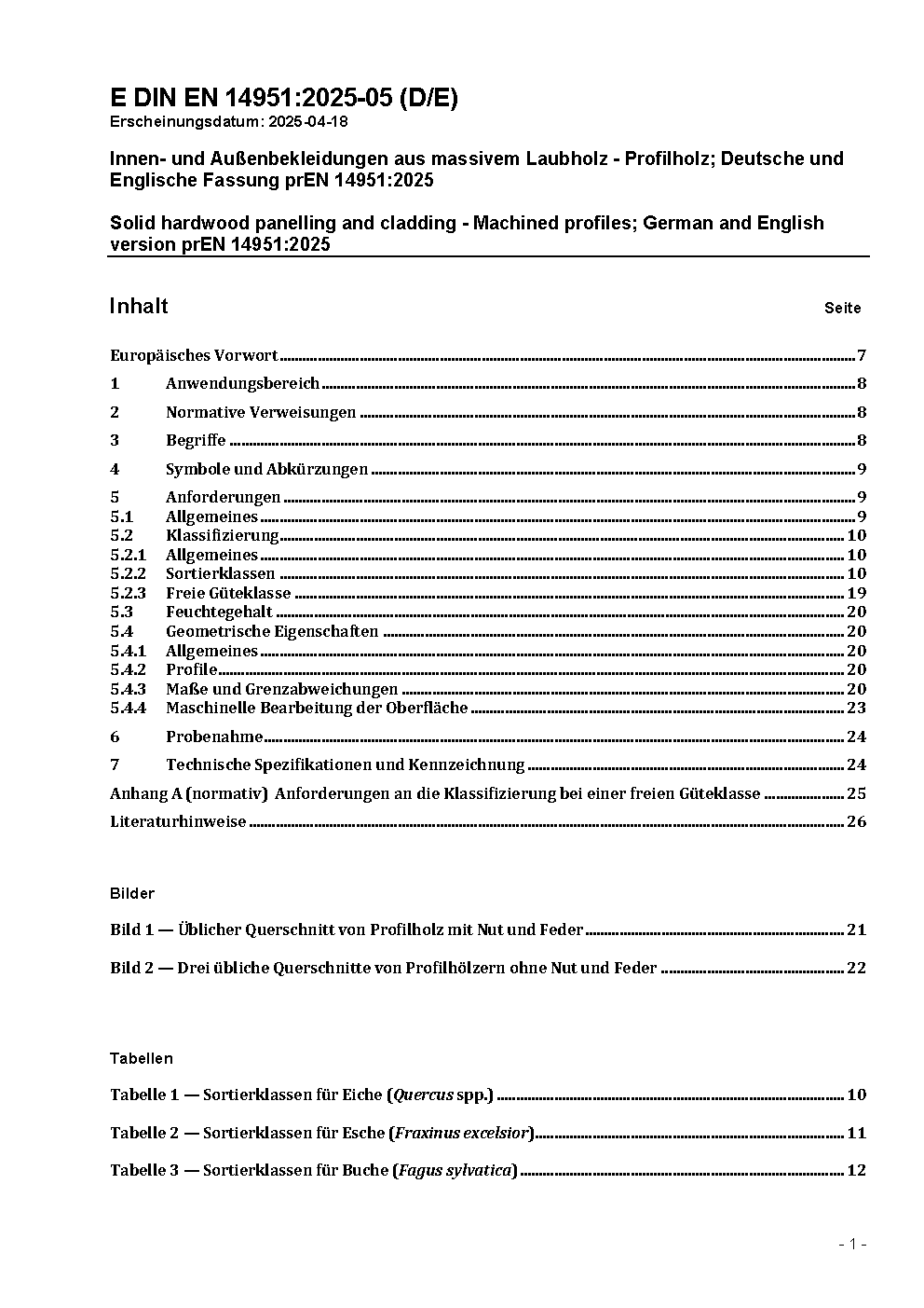 Innen- und Außenbekleidungen aus massivem Laubholz - Profilholzelemente; Deutsche Fassung EN 14951:2006