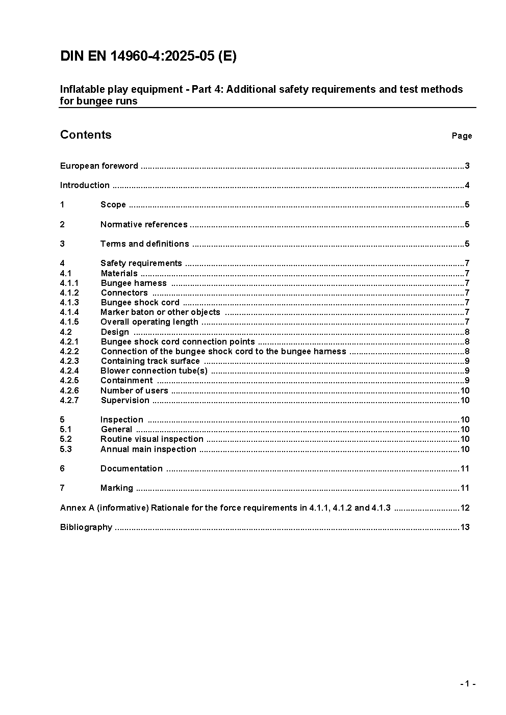 Aufblasbare Spielgeräte - Teil 4: Zusätzliche sicherheitstechnische Anforderungen und Prüfverfahren für Bungeeruns; Deutsche Fassung EN 14960-4:2025