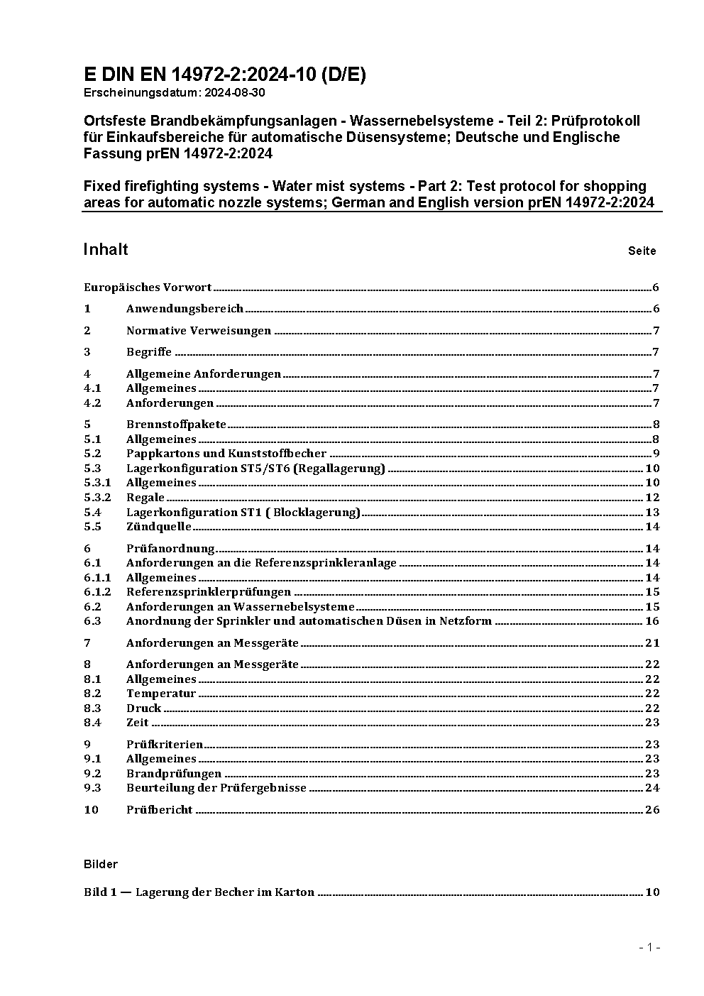 Ortsfeste Brandbekämpfungsanlagen - Wassernebelsysteme - Teil 2: Prüfprotokoll für Einkaufsbereiche für automatische Düsensysteme; Deutsche und Englische Fassung prEN 14972-2:2024