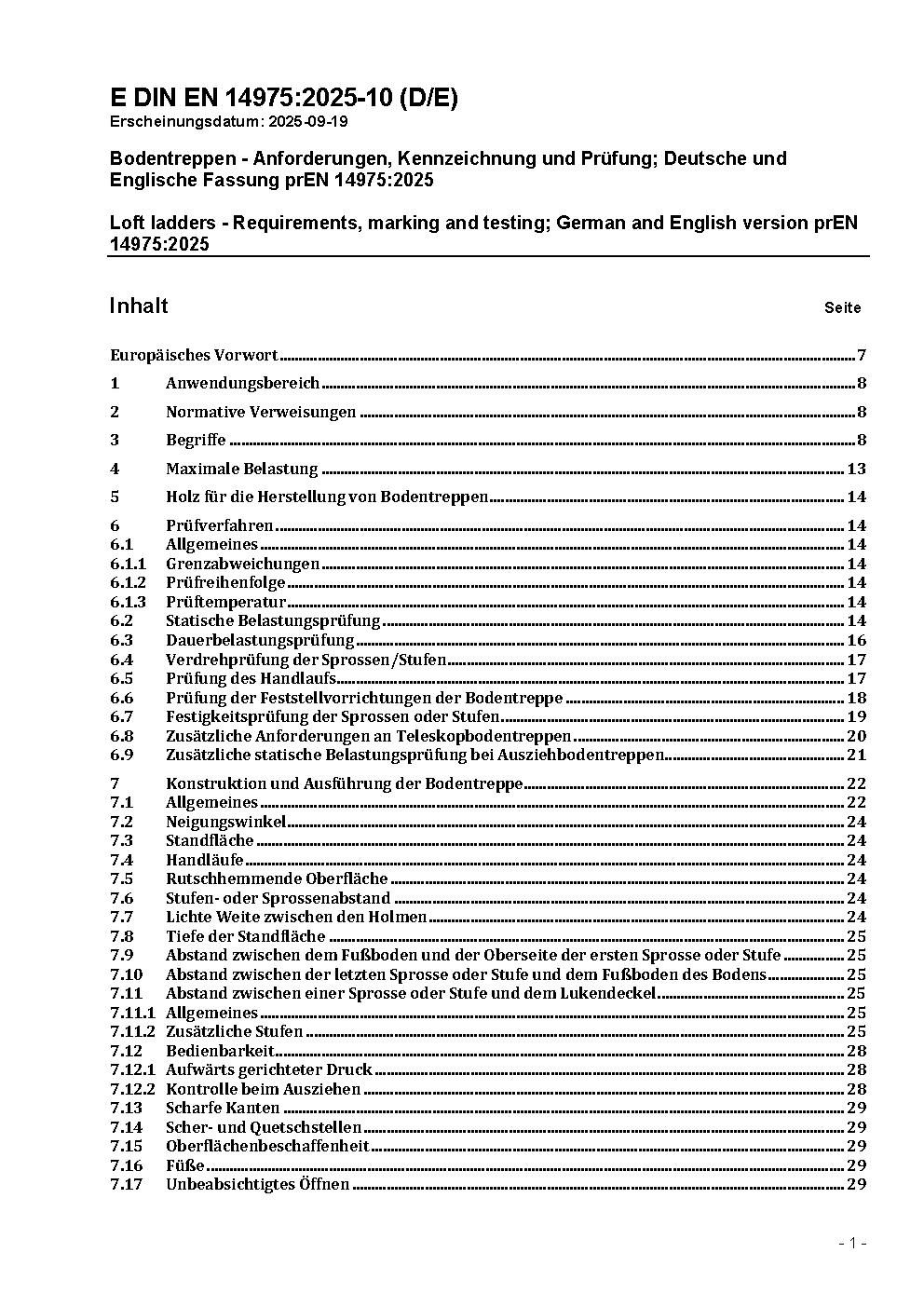 Bodentreppen - Anforderungen, Kennzeichnung und Prüfung; Deutsche Fassung EN 14975:2006