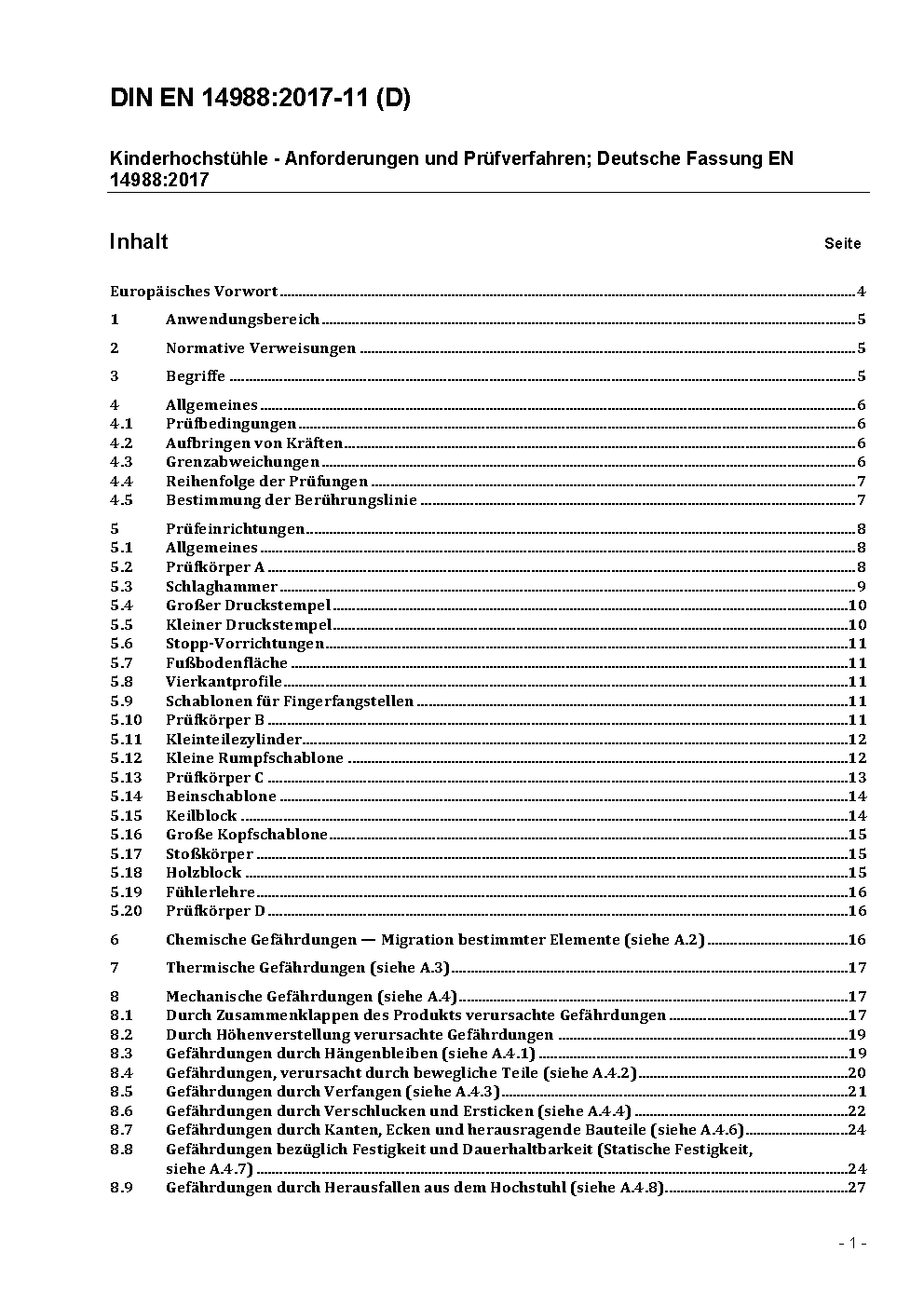 Prévu pour remplacer DIN EN 14988-1 (2012-10), DIN EN 14988-2 (2012-10).