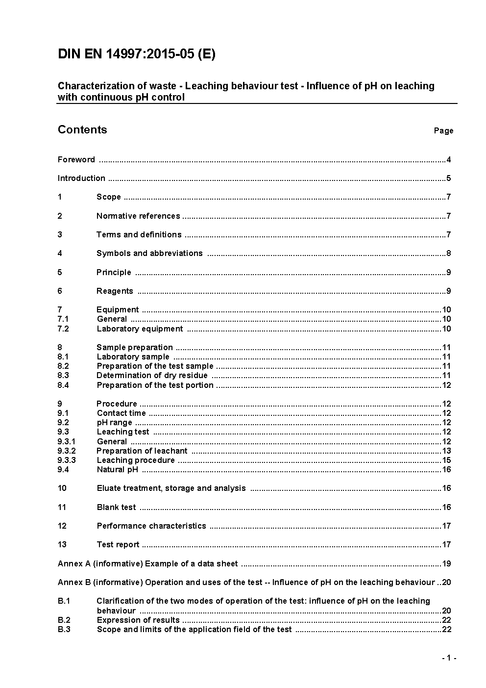 Characterization of waste - Leaching behaviour test - Influence of pH on leaching with continuous pH control; German version prEN 14997:2013