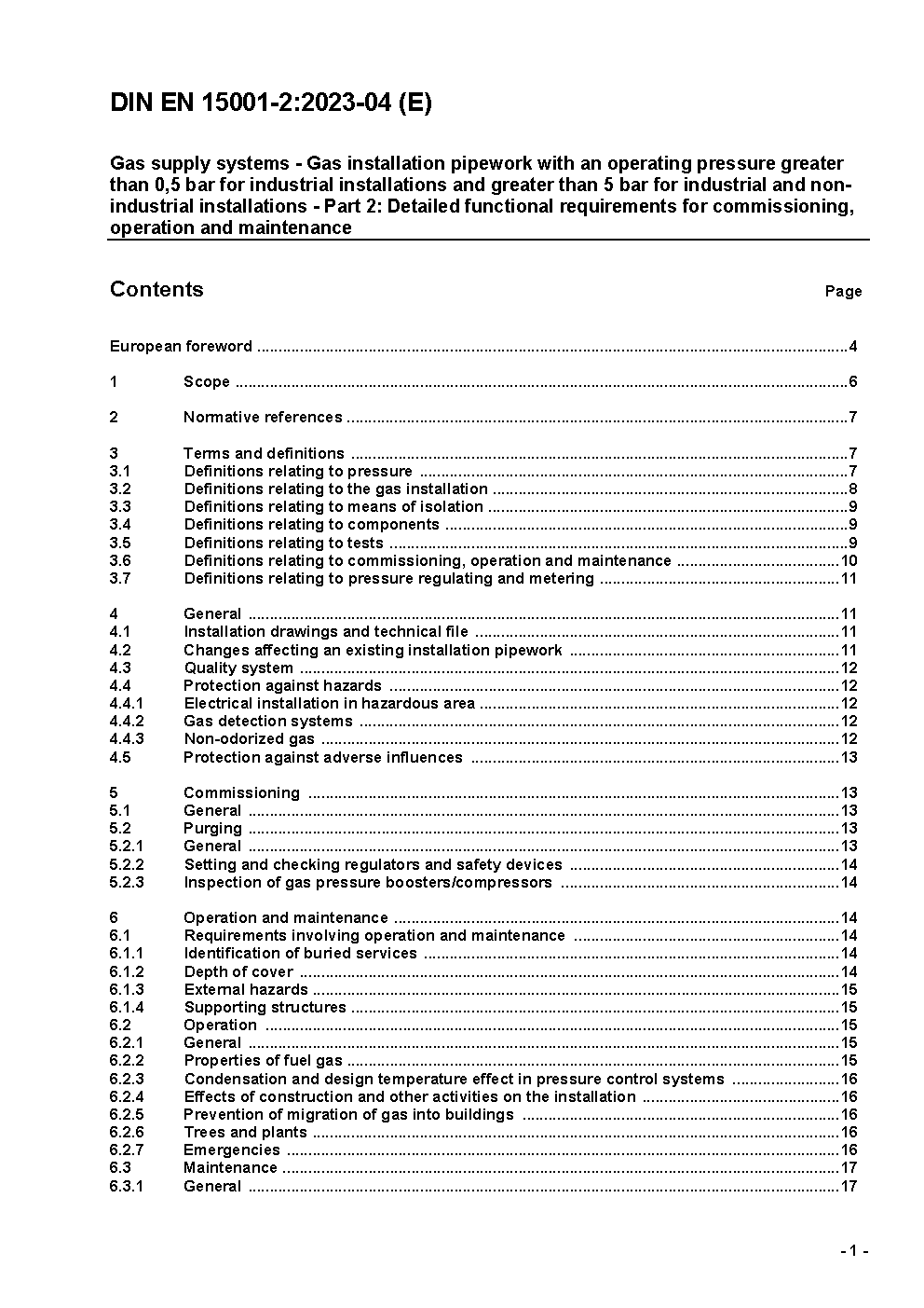 Gas infrastructure - Gas installation pipework with an operating pressure greater than 0,5 bar for industrial installations and greater than 5 bar for industrial and non-industrial installations - Part 2: Detailed functional requirements for commissioning, operation and maintenance; German version EN 15001-2:2008
