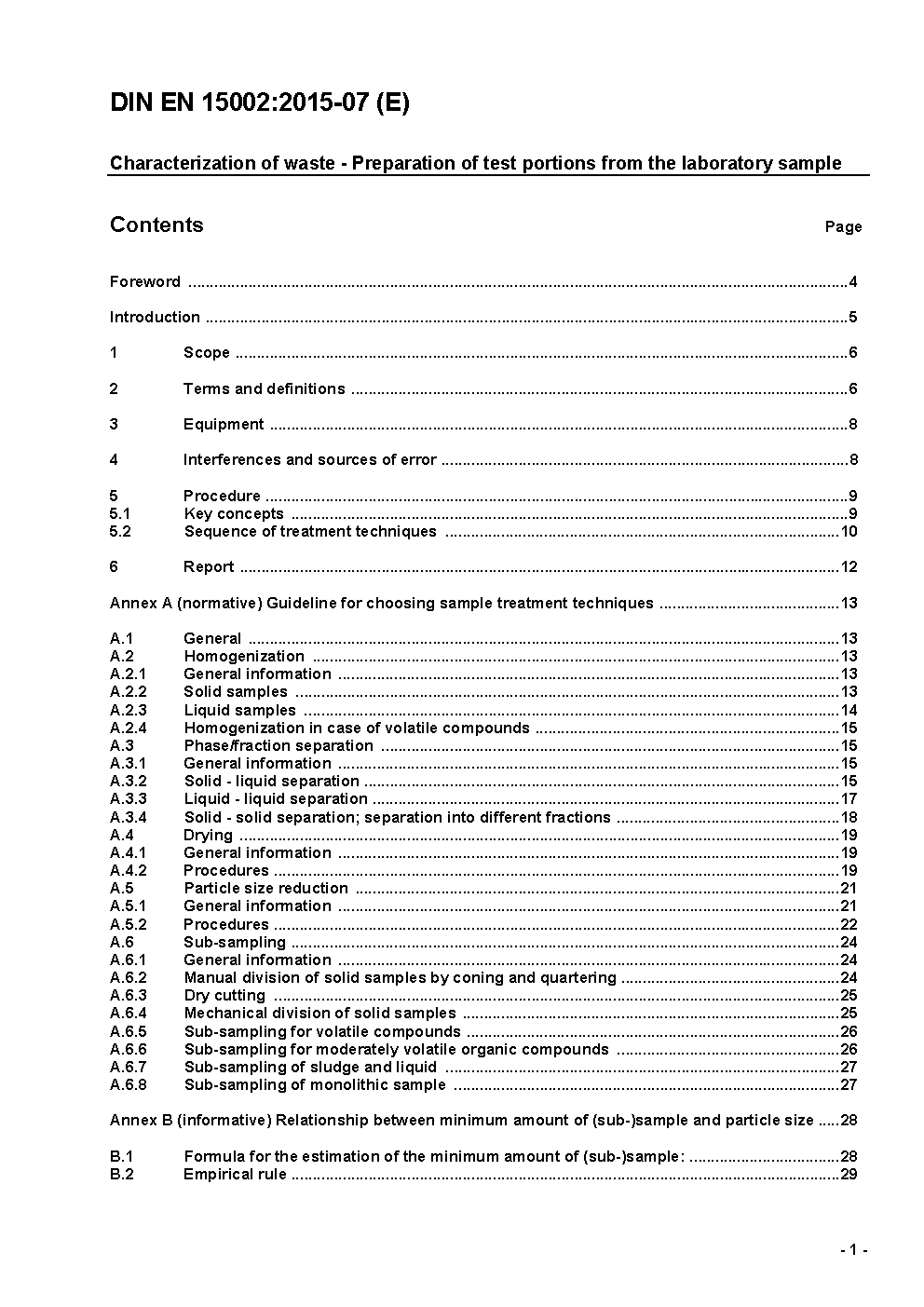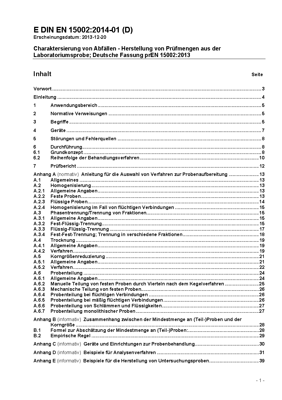 Charakterisierung von Abfällen - Herstellung von Prüfmengen aus der Laboratoriumsprobe; Deutsche Fassung EN 15002:2006