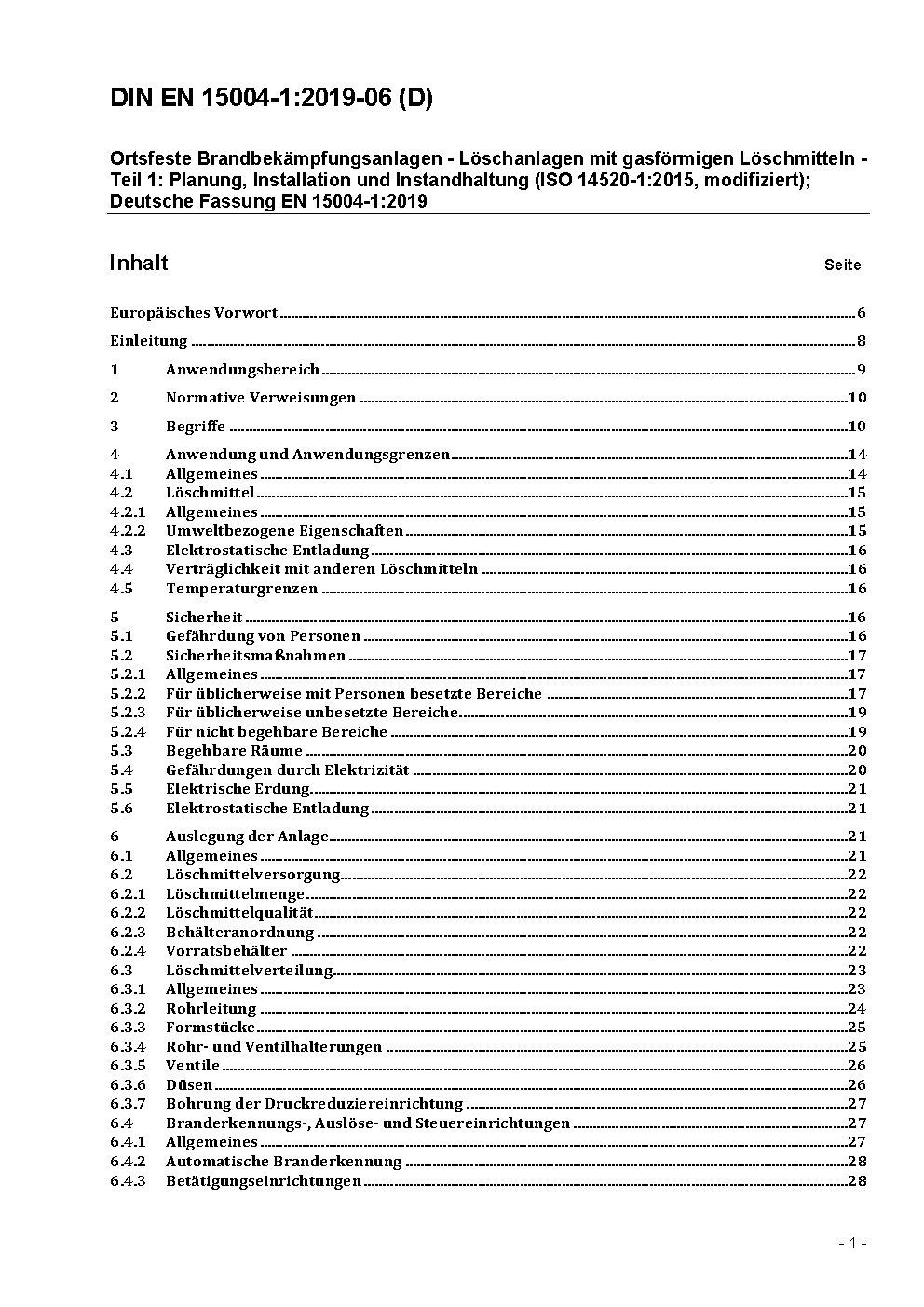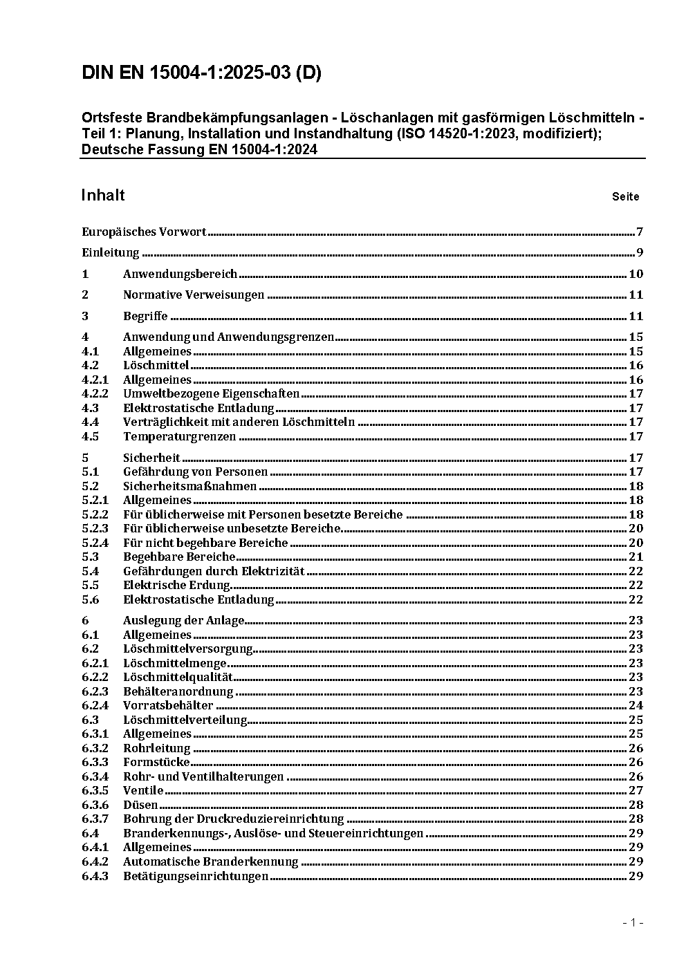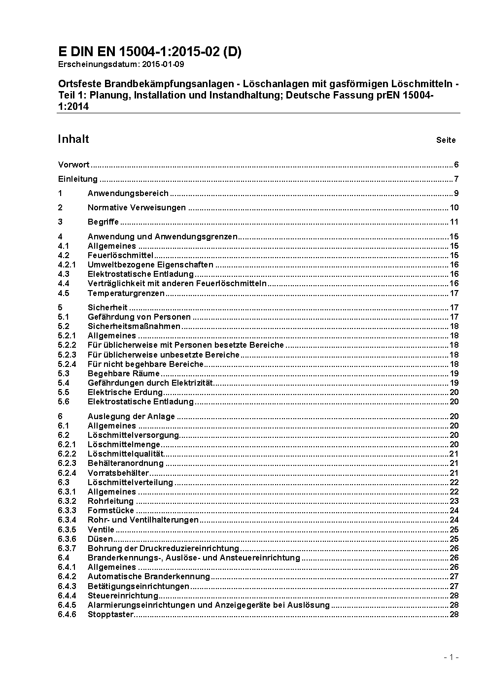Ortsfeste Brandbekämpfungsanlagen - Löschanlagen mit gasförmigen Löschmitteln - Teil 1: Allgemeine Anforderungen an die Planung und den Betrieb; Deutsche Fassung prEN 15004-1:2004