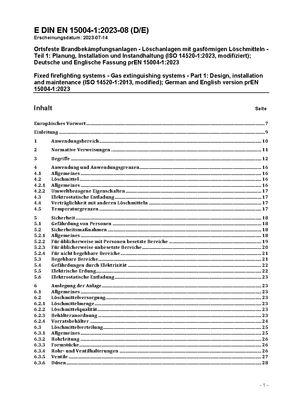Fixed firefighting systems - Gas extinguishing systems - Part 1: General requirements for planning and installation; German version prEN 15004-1:2004