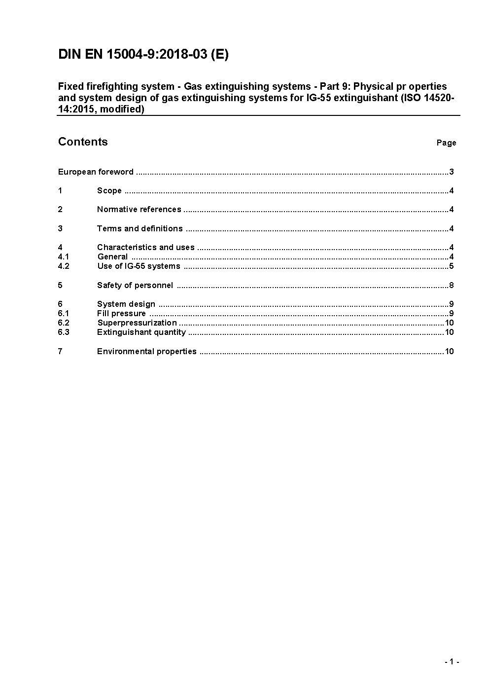 Ortsfeste Brandbekämpfungsanlagen - Löschanlagen mit gasförmigen Löschmitteln - Teil 9: Physikalische Eigenschaften und Anlagenauslegung für Feuerlöschmittel IG-55 (ISO 14520-14, modifiziert); Deutsche Fassung prEN 15004-9:2007