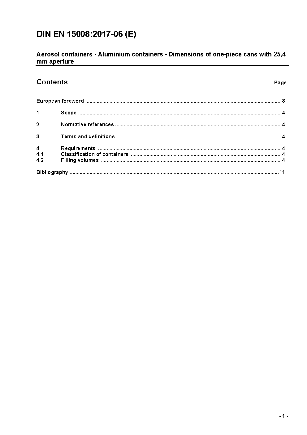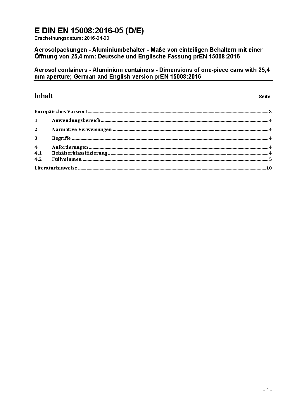 Aerosol containers - Aluminium containers - Dimensions of one-piece cans with 25,4 mm aperture; German version EN 15008:2017