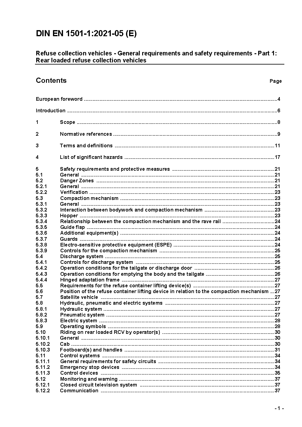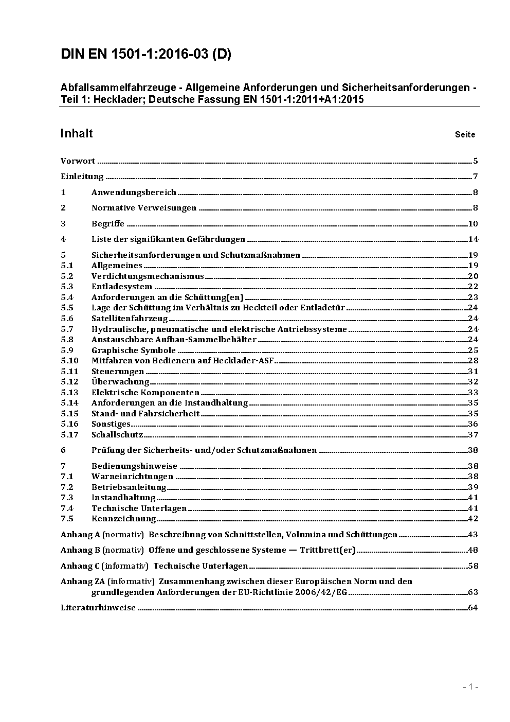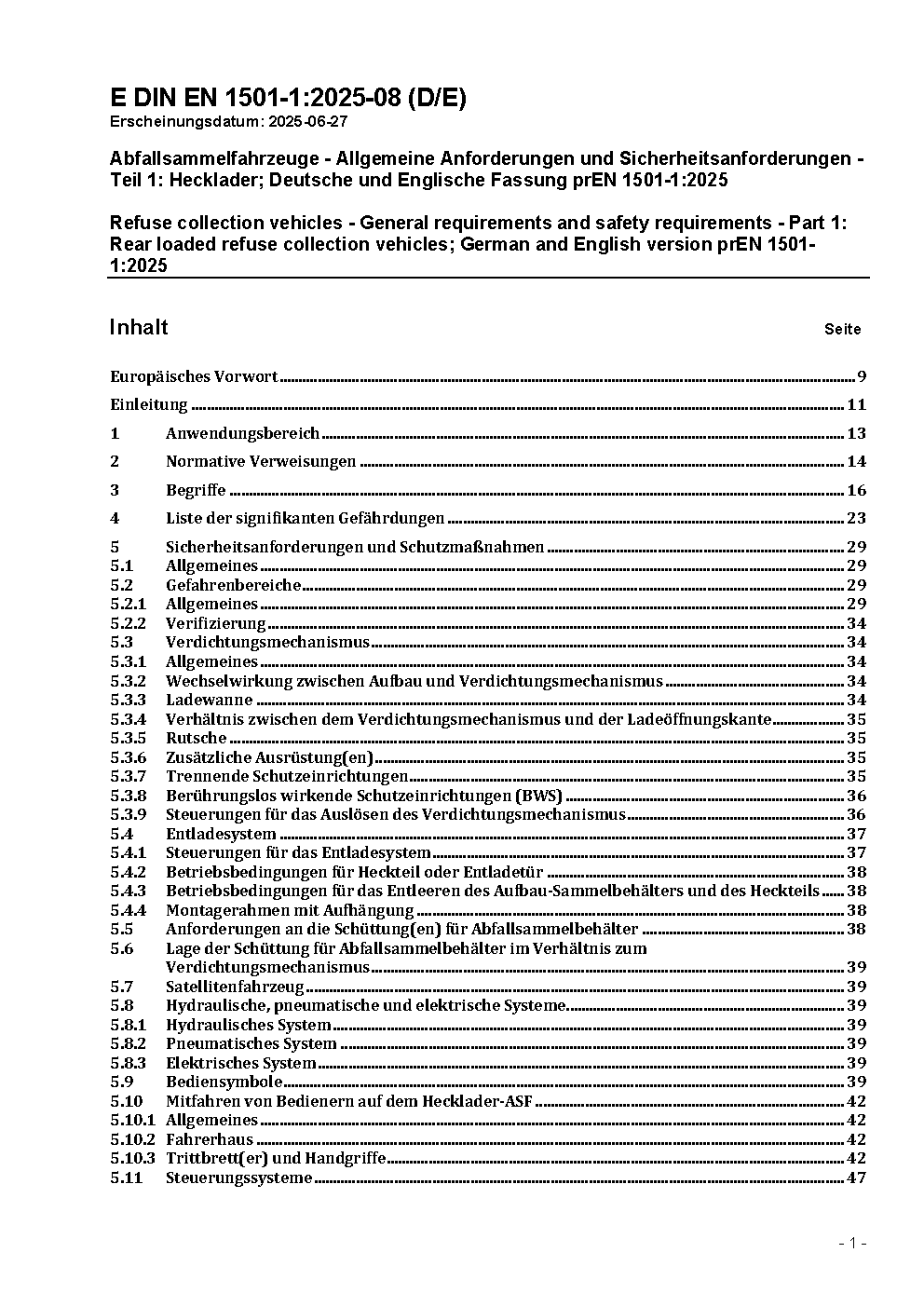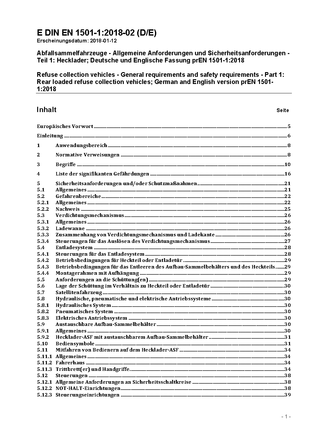 Abfallsammelfahrzeuge - Allgemeine Anforderungen und Sicherheitsanforderungen - Teil 1: Hecklader; Deutsche Fassung EN 1501-1:2011/FprA1:2014