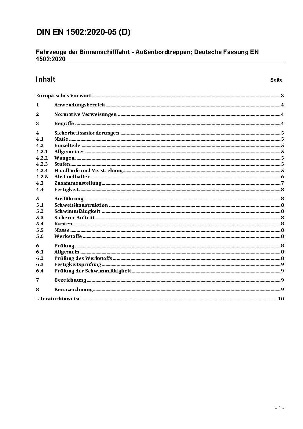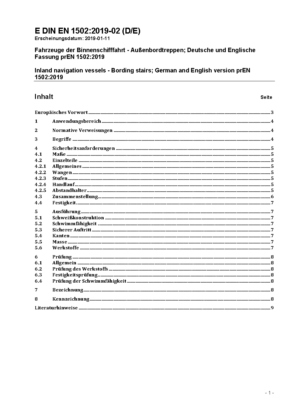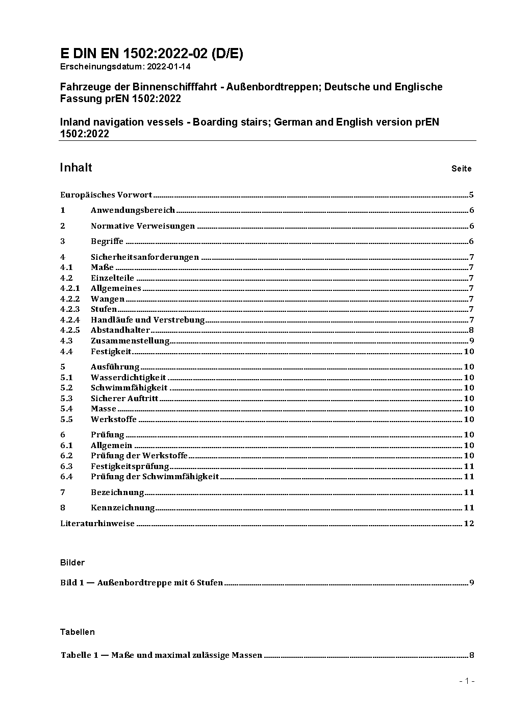 Fahrzeuge der Binnenschiffahrt - Außenbordtreppen; Deutsche Fassung EN 1502:1995