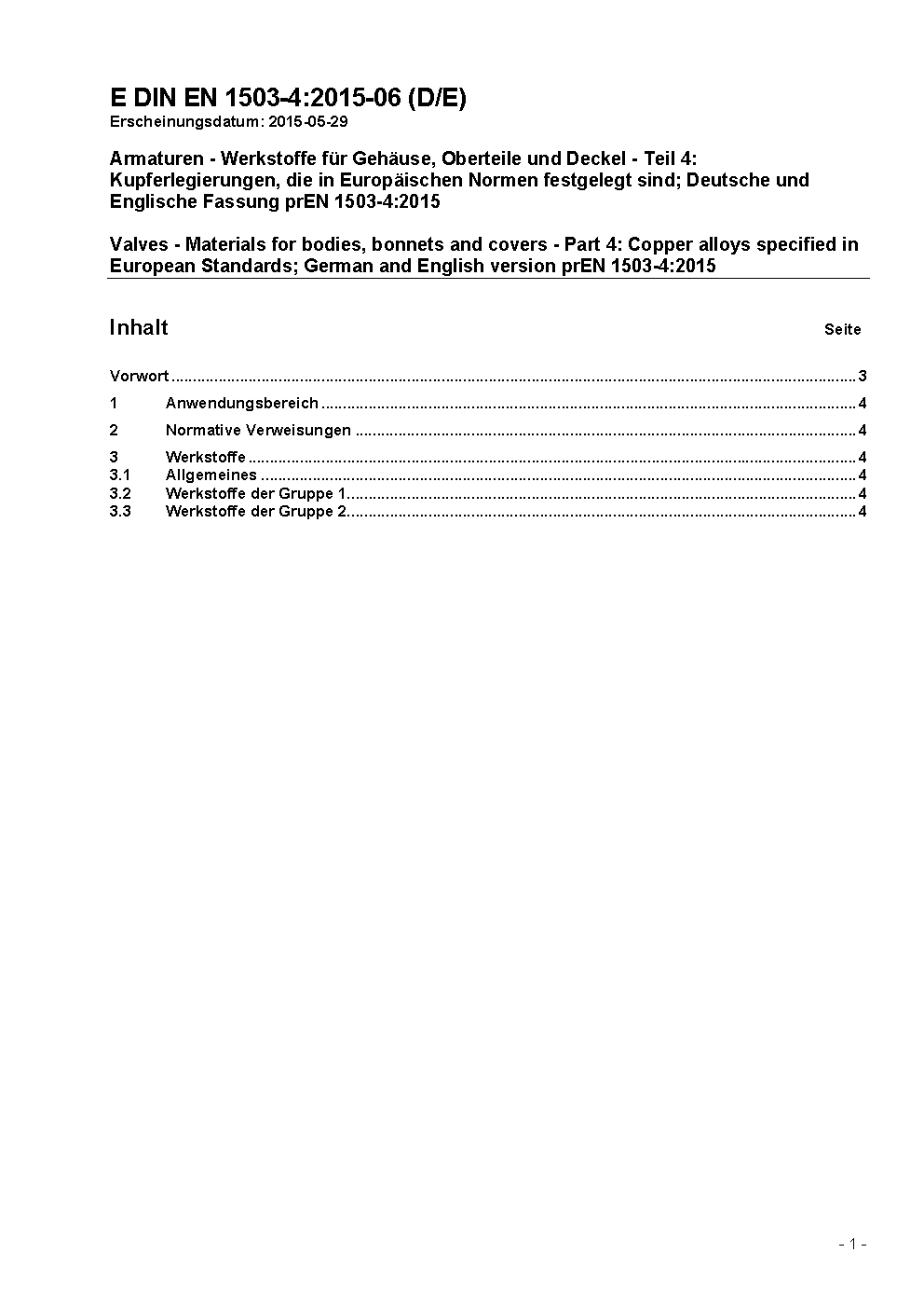 Armaturen - Werkstoffe für Gehäuse, Oberteile und Deckel - Teil 4: Kupferlegierungen, die in Europäischen Normen festgelegt sind; Deutsche Fassung EN 1503-4:2016