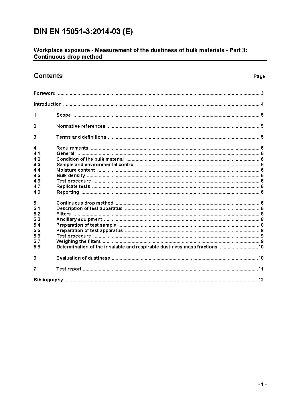 Workplace exposure - Measurement of the dustiness of bulk materials - Part 3: Continuous drop method; German version prEN 15051-3:2011