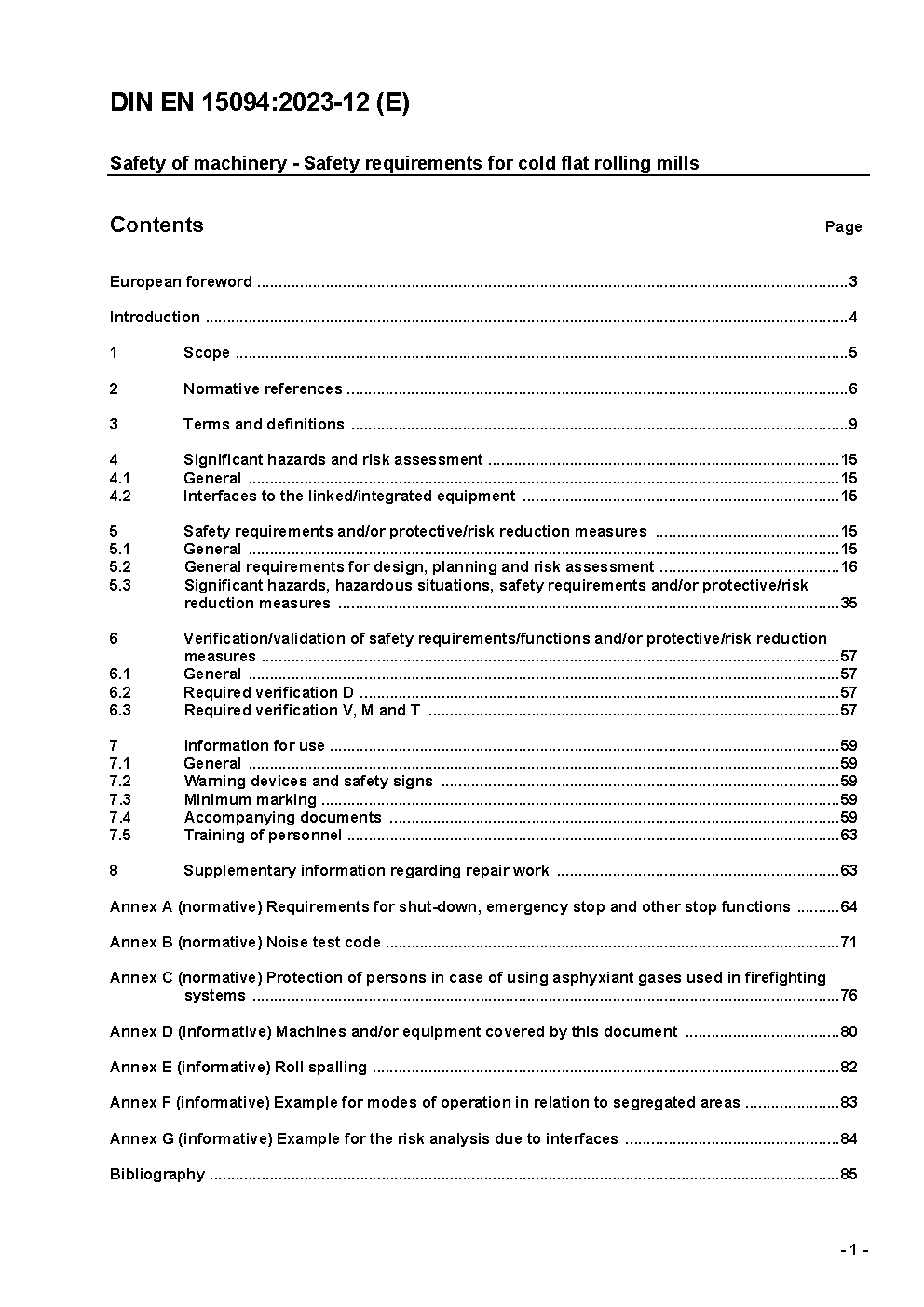 Safety of machinery - Safety requirements for cold flat rolling mills; German version EN 15094:2022