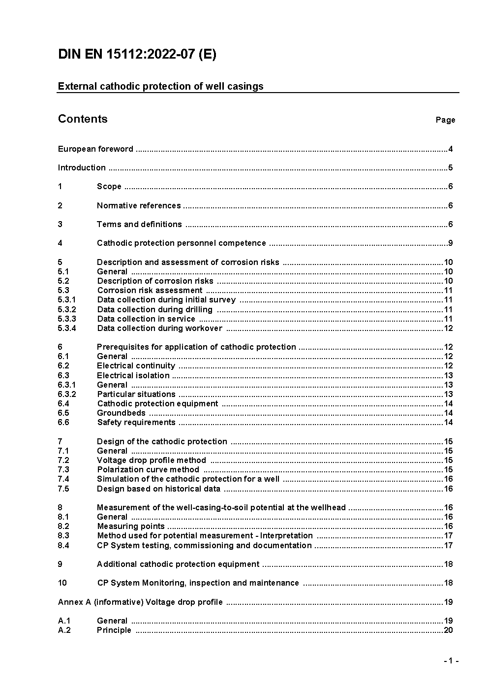 External cathodic protection of well casings; German version EN 15112:2006