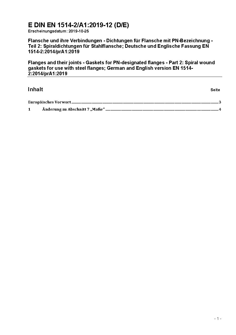 Flansche und ihre Verbindungen - Dichtungen für Flansche mit PN-Bezeichnung - Teil 2: Spiraldichtungen für Stahlflansche; Deutsche Fassung EN 1514-2:2014