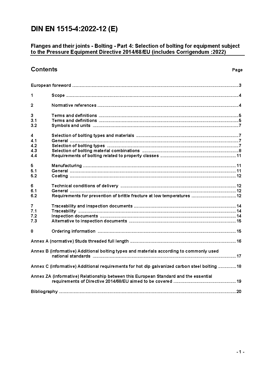 Flanges and their joints - Bolting - Part 4: Selection of bolting for equipment subject to the Pressure Equipment Directive 97/23/EC; German version EN 1515-4:2009