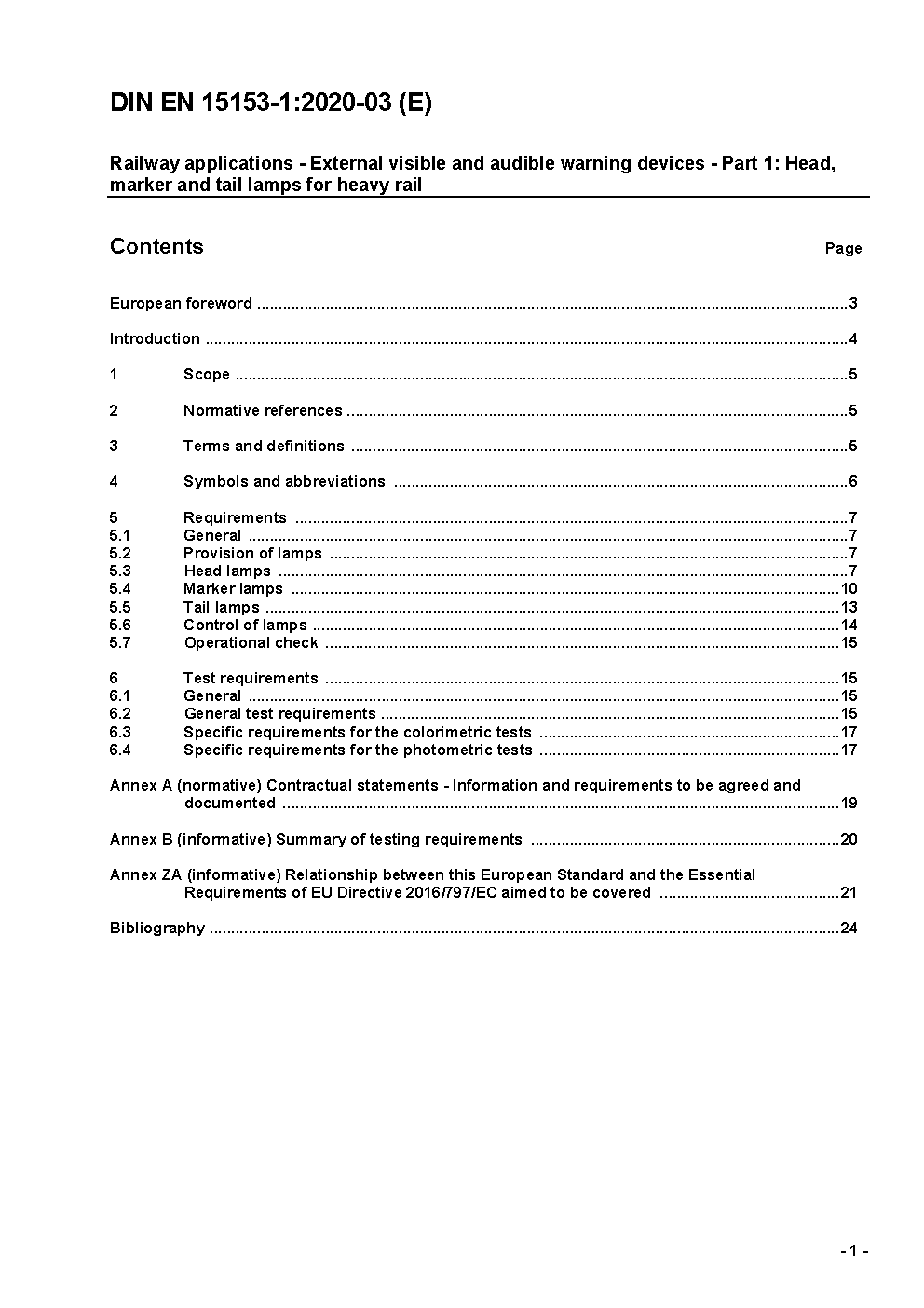 Railway applications - External visible and audible warning devices for trains - Part 1: Head, marker and tail lamps; German version EN 15153-1:2013+A1:2016