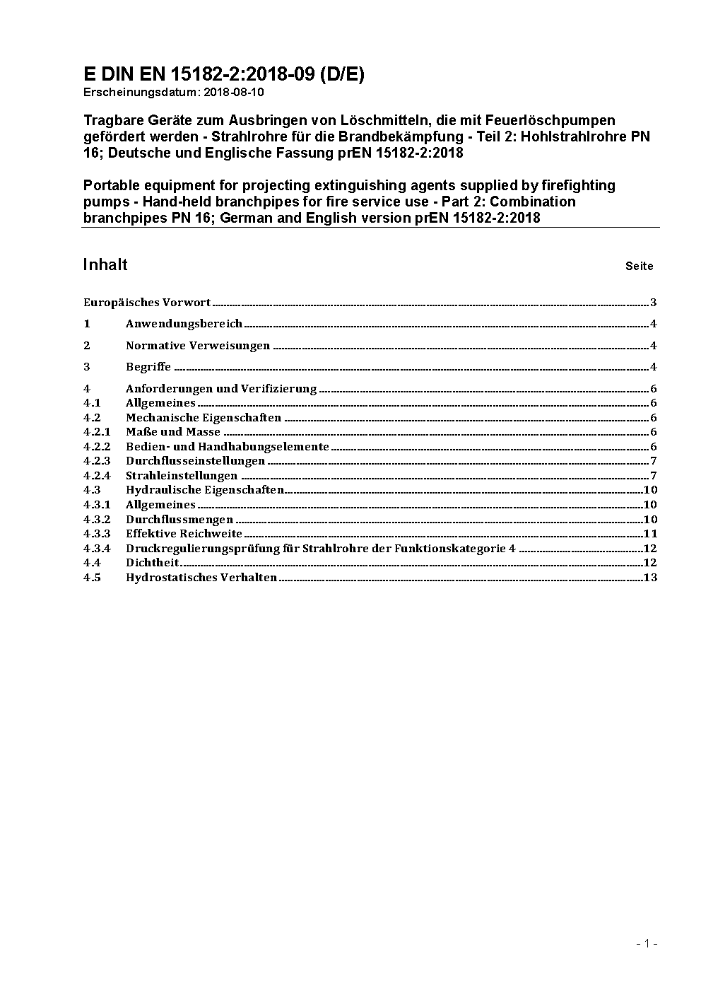 Tragbare Geräte zum Ausbringen von Löschmitteln, die mit Feuerlöschpumpen gefördert werden - Strahlrohre für die Brandbekämpfung - Teil 2: Hohlstrahlrohre PN 16; Deutsche und Englische Fassung prEN 15182-2:2018