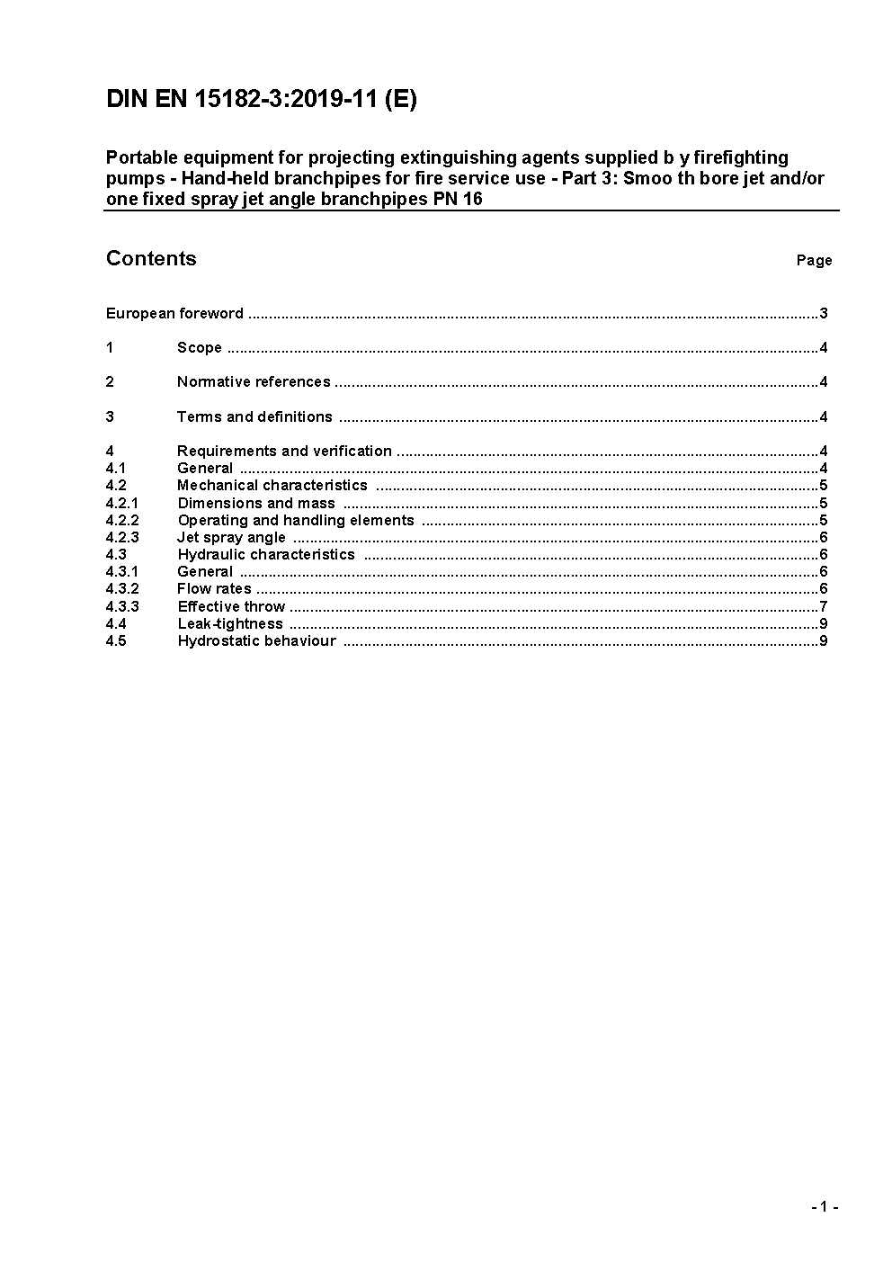 Portable equipment for projecting extinguishing agents supplied by firefighting pumps - Hand-held branchpipes for fire service use - Part 3: Smooth bore jet and/or one fixed spray jet angle branchpipes PN 16; German and English version prEN 15182-3:2018