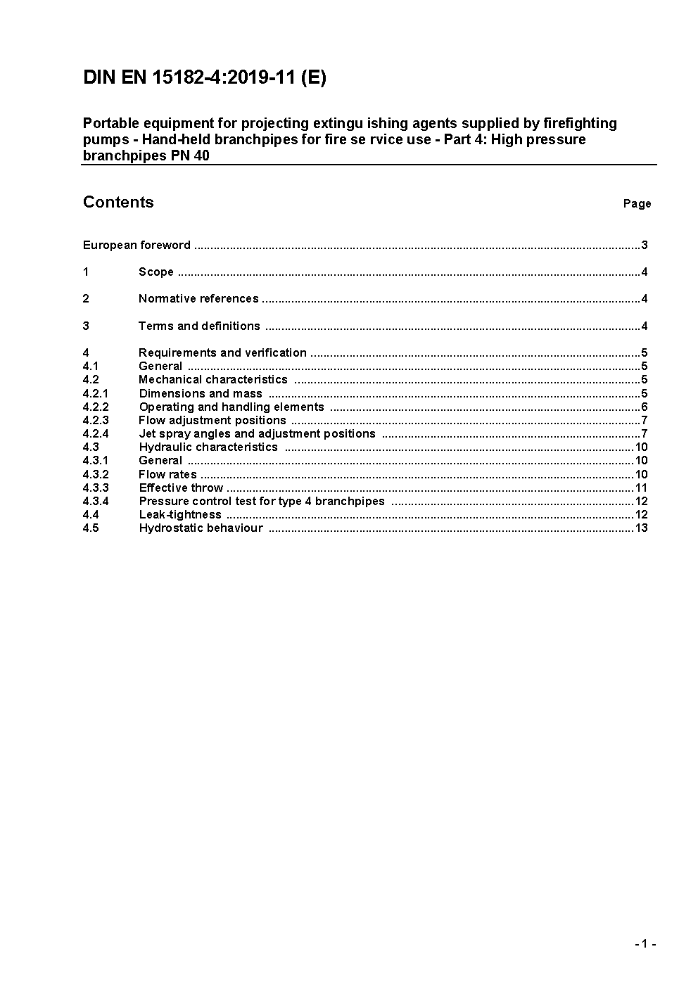 Hand-held branchpipes for fire service use - Part 4: High pressure branchpipes PN 40