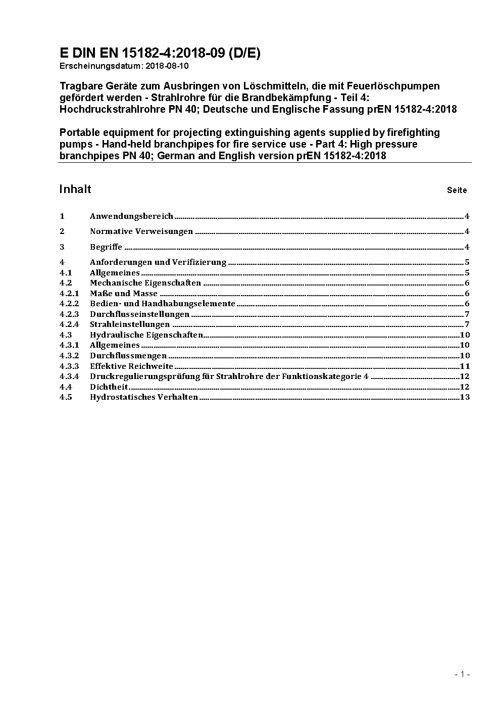 Strahlrohre für die Brandbekämpfung - Teil 4: Hochdruckstrahlrohre PN 40