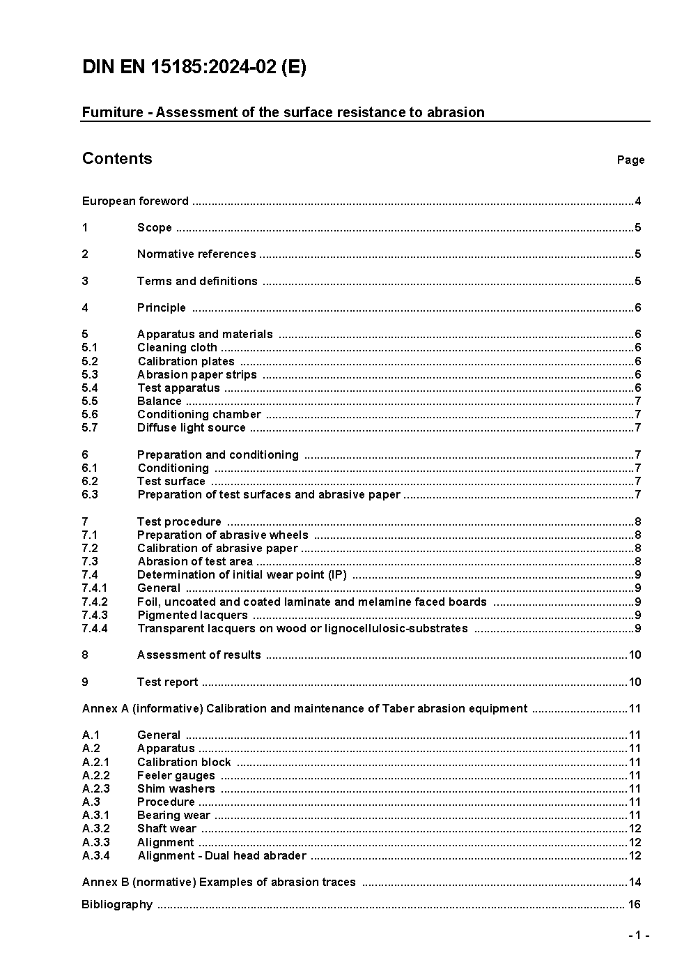 Furniture - Assessment of the surface resistance to abrasion; German version EN 15185:2011