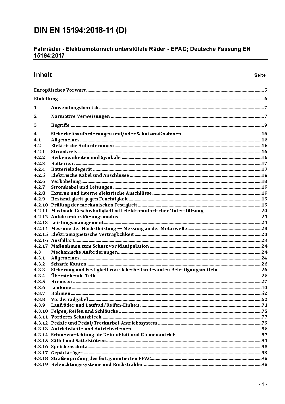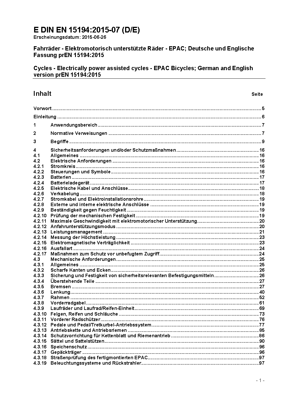 Fahrräder - Elektromotorisch unterstützte Räder - EPAC; Deutsche Fassung EN 15194:2017