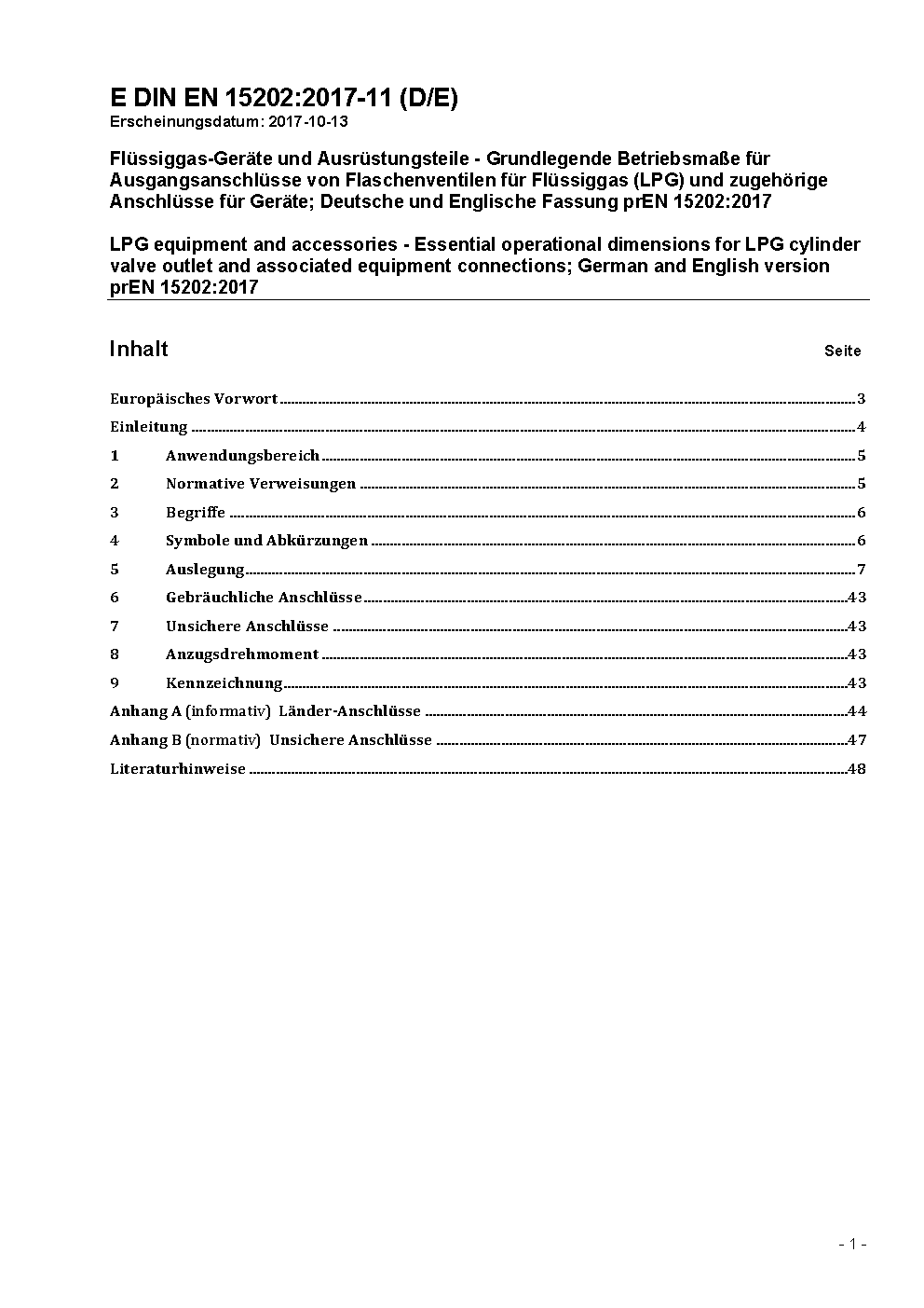 Flüssiggas-Geräte und Ausrüstungsteile - Grundmaße für Ventilauslässe an Flüssiggas(LPG)-Flaschen und zugehörigen Verbindungen für Geräte; Deutsche Fassung prEN 15202:2005