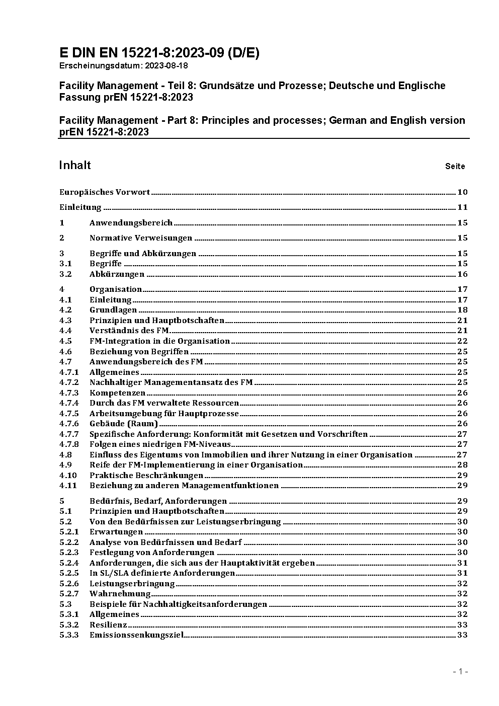 Facility Management - Part 8: Principles and processes; German and English version prEN 15221-8:2023
