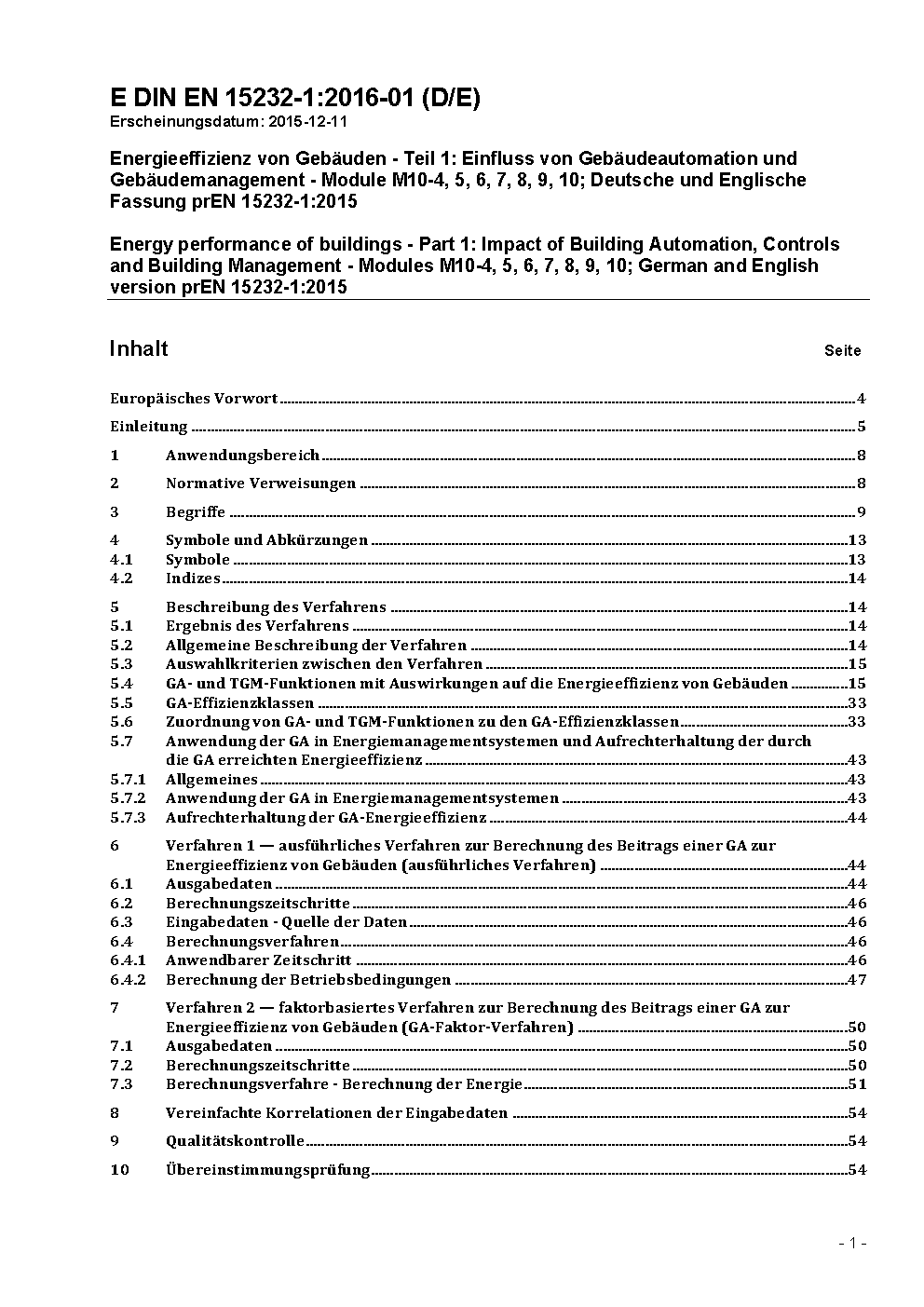 Energieeffizienz von Gebäuden - Teil 1: Einfluss von Gebäudeautomation und Gebäudemanagement - Module M10-4, 5, 6, 7, 8, 9, 10; Deutsche Fassung EN 15232-1:2017
