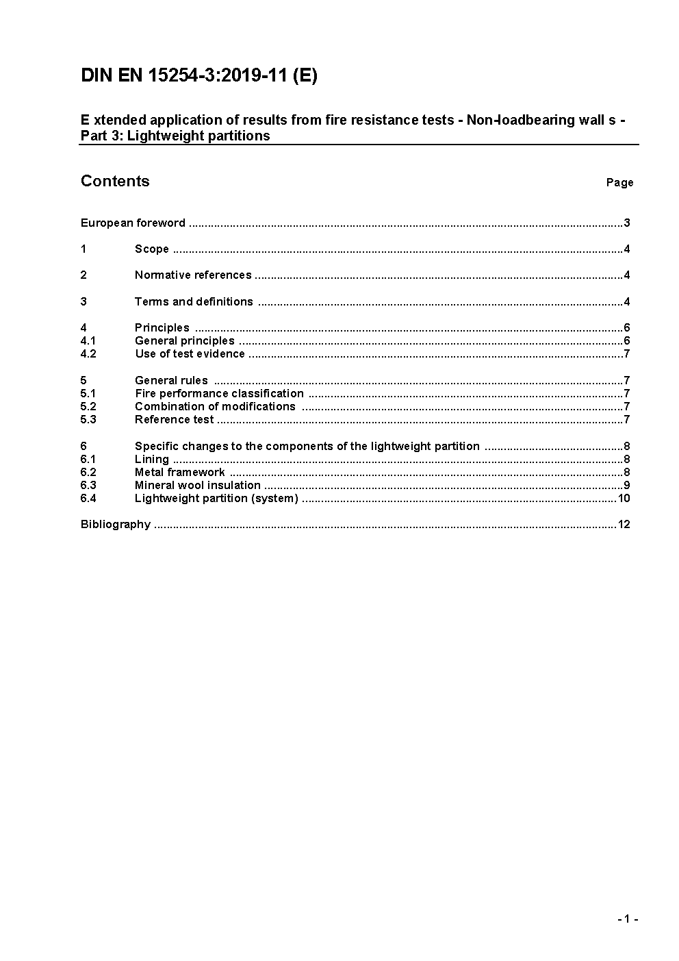Extended application of results from fire resistance tests - Non-loadbearing walls - Part 3: Lightweight partitions; German and English version prEN 15254-3:2018