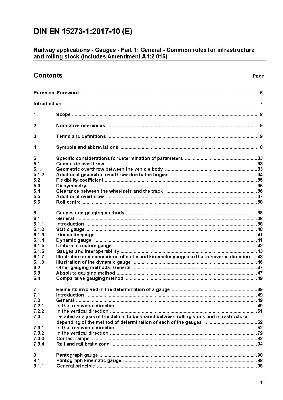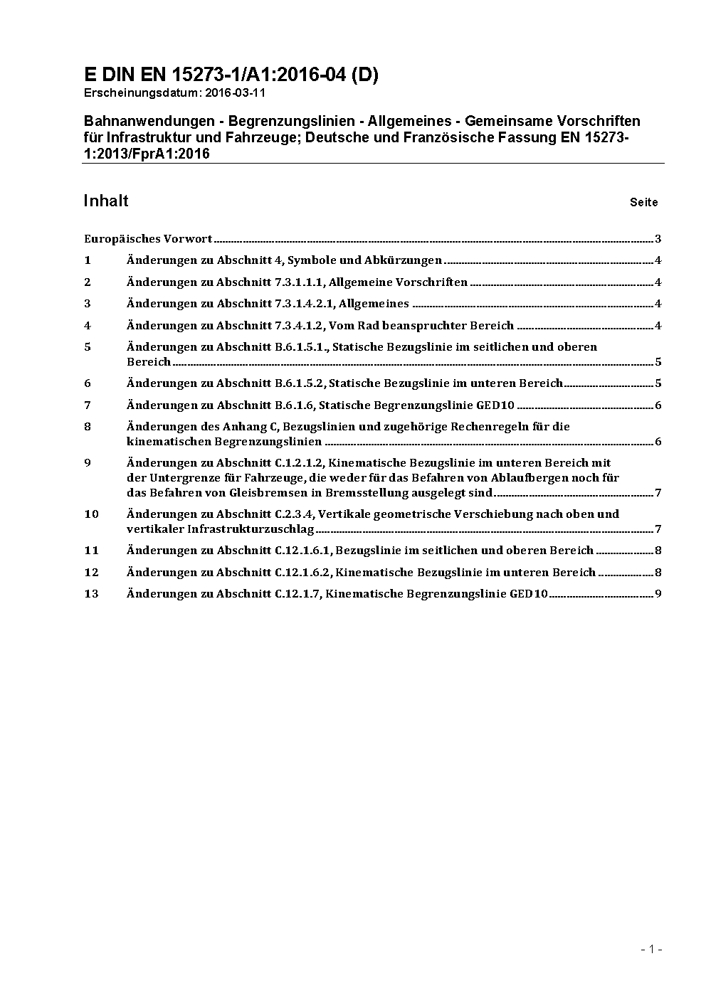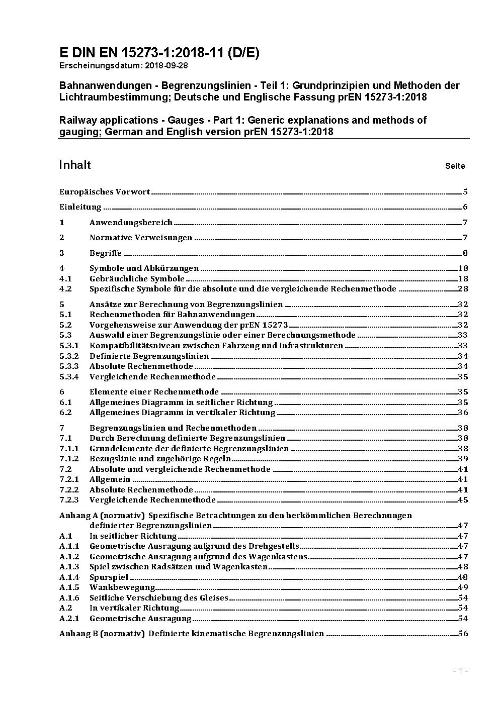 Railway applications - Gauges - Part 1: Generals - Common rules for Rolling Stock and Infrastructure; German and English version prEN 15273-1:2023
