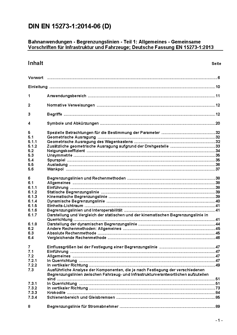 Bahnanwendungen - Begrenzungslinien - Teil 1: Allgemeines - Gemeinsame Vorschriften für Fahrzeuge und Infrastruktur; Deutsche und Englische Fassung prEN 15273-1:2023