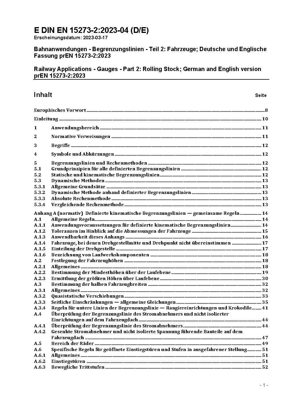 Bahnanwendungen - Begrenzungslinien - Teil 2: Fahrzeugbegrenzungslinien; Deutsche Fassung FprEN 15273-2:2012