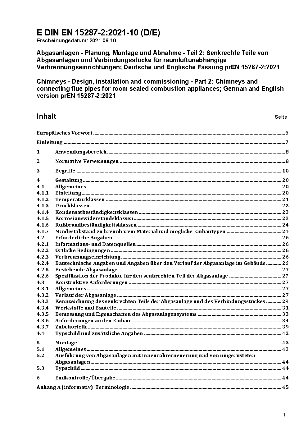 Abgasanlagen - Planung, Montage und Abnahme von Abgasanlagen - Teil 2: Abgasanlagen für raumluftunabhängige Feuerstätten; Deutsche Fassung prEN 15287-2:2006