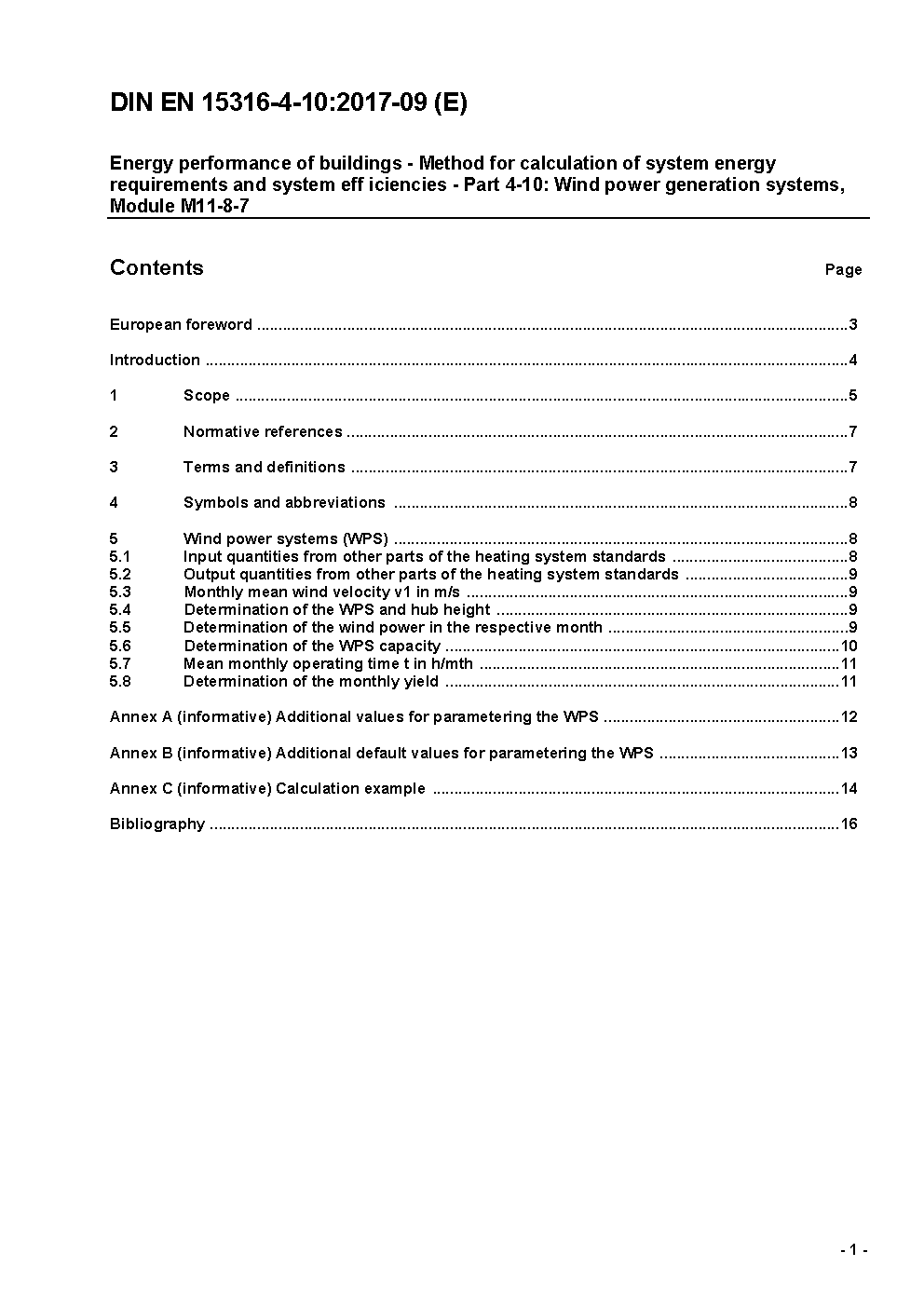 Energy performance of buildings - Method for calculation of system energy requirements and system efficiencies - Part 4-10: Wind power generation systems, Module M11-8-7; German version EN 15316-4-10:2017
