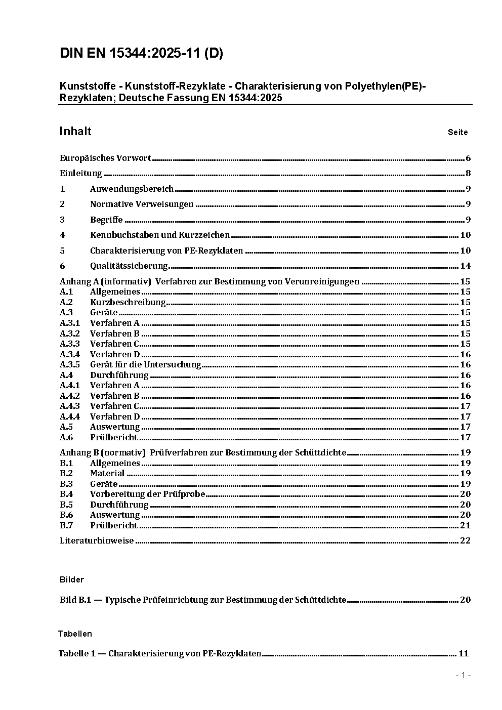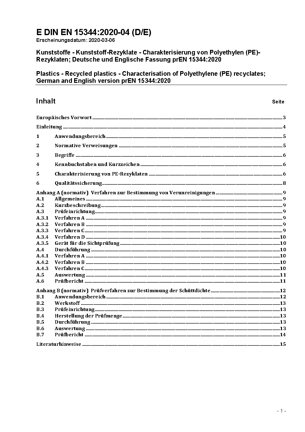 Kunststoffe - Kunststoff-Rezyklate - Charakterisierung von Polyethylen (PE)-Rezyklaten; Deutsche Fassung EN 15344:2007