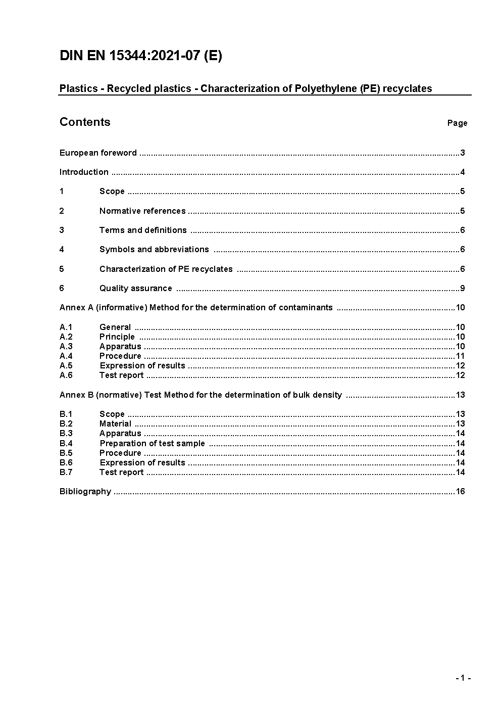 Plastics - Recycled Plastics - Characterisation of Polyethylene (PE) recyclates; German version EN 15344:2007