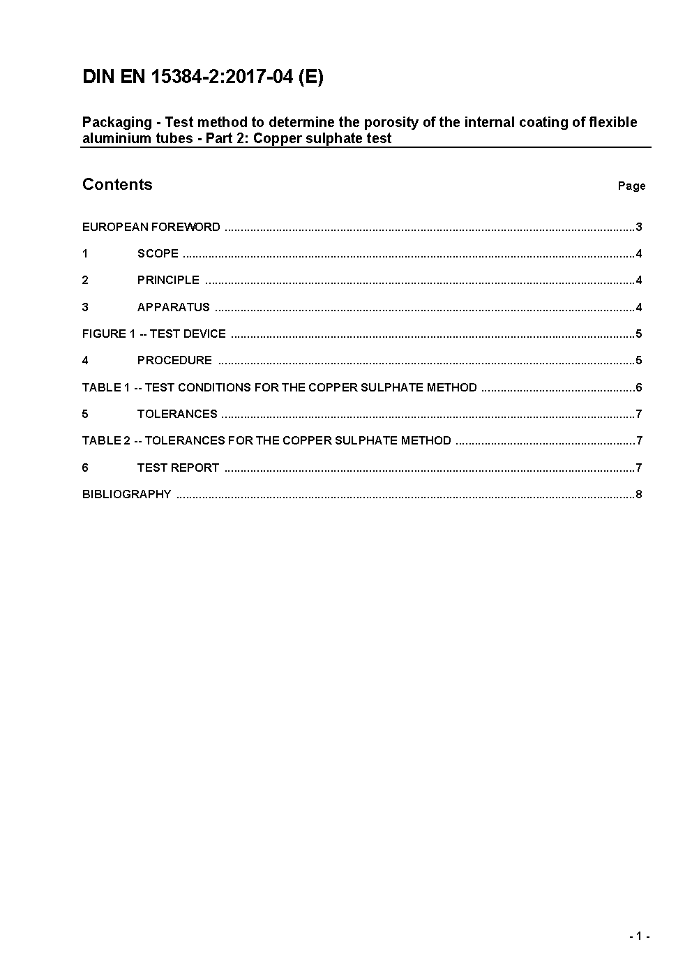 Packaging - Test method to determine the porosity of the internal coating of flexible aluminium tubes - Part 2: Copper sulphate test; German and English version prEN 15384-2:2015