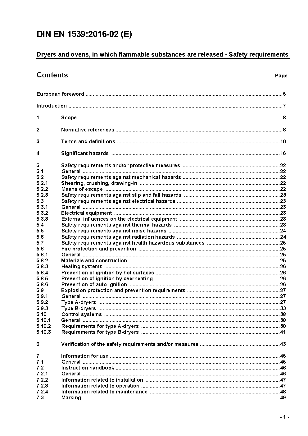 Dryers and ovens, in which flammable substances are released - Safety requirements; German version prEN 1539:2008